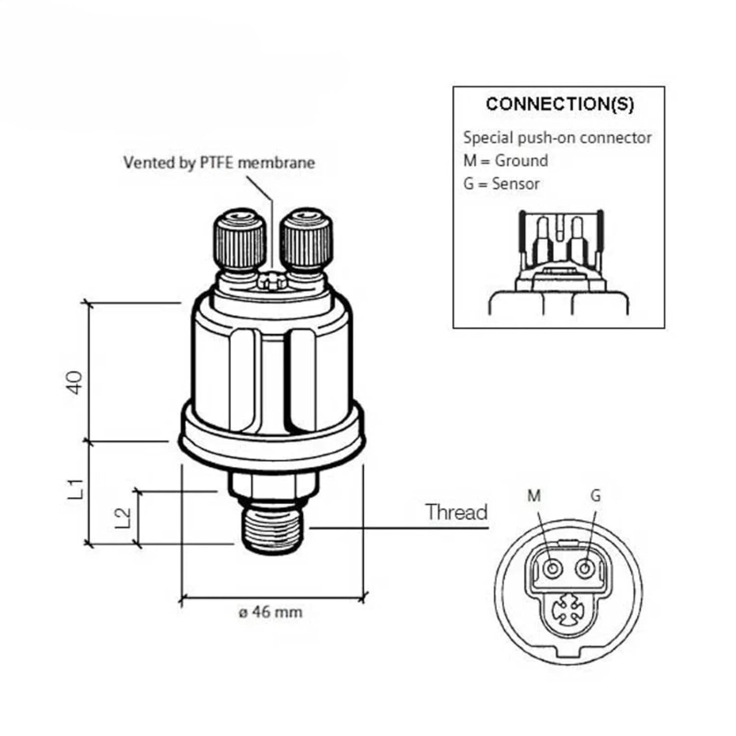 Original 360-081-061-006C VDO Pressure sender 0-10 Bar M12x1.5 Diesel EnginePressure range: 0 to 10 BarThread: M12 x 1.5 Conical shortSender resistance range: 10 - 184 OhmSensor signal: 1-pole common groundWarning contact: 5.00 Bar ± 0.30 BarWeight: 0.14kg