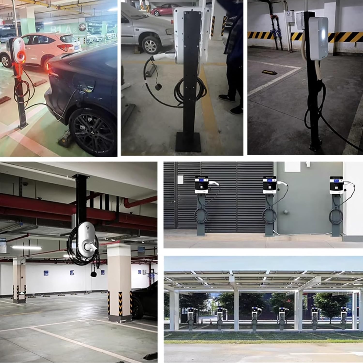 Waterproof Charging Cable Protector Enclosure:As the electric vehicle (EV) market grows, the demand for dependable charging solutions becomes increasingly important. Our electric vehicle charging stand is expertly crafted to fulfill this need, providing a robust and visually appealing option for both residential and commercial applications. Designed with a smart outdoor aesthetic, this EV charger base is optimized for installation on concrete surfaces. Its reinforced base ensures outstanding stability and security, allowing you to charge your vehicle confidently in various settings. Whether in a home garage, bustling shopping mall, spacious parking lot, or busy factory, this charging column is versatile enough to meet your requirements. This electric vehicle charger stand includes all the essential hardware, such as expansion bolts and screws, making installation straightforward and convenient. Say goodbye to complicated setups and enjoy a seamless experience from the start. Key Features: - **Lockable Electric Vehicle Charging Stand**: Enhances security for your charging unit, providing peace of mind. - **Compact Dimensions**: Measuring 145*20*14cm (59*7.9*5.5in), it's designed for efficient use of space without compromising strength. - **Durable Material**: Constructed from galvanized steel, this stand is built to withstand the elements for long-lasting performance. - **Flexible Installation Options**: Suitable for both vertical ground and ceiling installations, catering to your specific space needs. Upgrade your EV charging experience with our thoughtfully designed stand, which not only meets the increasing demands of electric vehicle users but also prioritizes safety, stability, and user-friendliness. Make a smart investment in your charging infrastructure that aligns with the future of transportation.