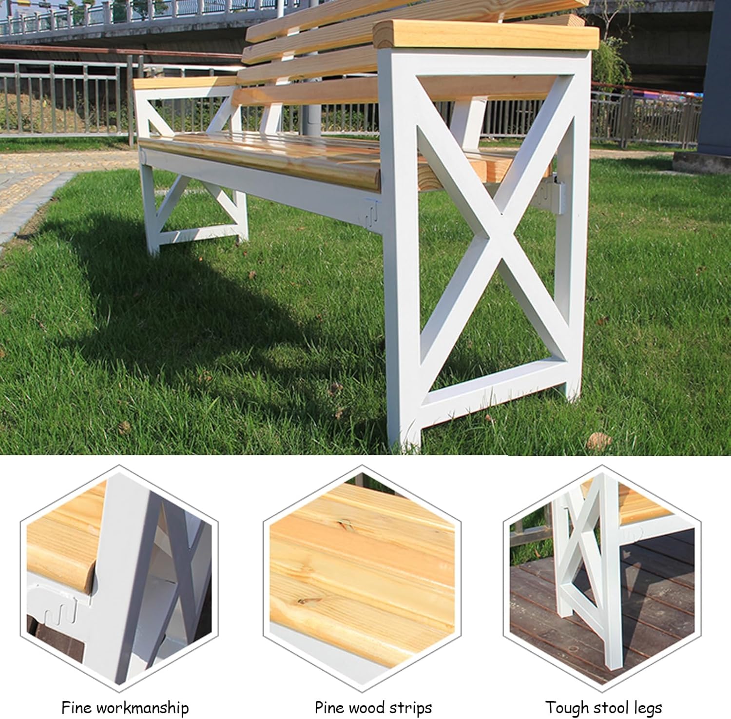 Support flat iron.The backrest is backed by thickened steel pipes to make the chair more sturdy and durable.With its concise and rustic design, this garden bench is a suitable choice for various outdoor areas such as the patio, pool and backyard. The attractive furniture complements your outdoor area with unique charm. Simply combine it with your favorite side table and enjoy your free time with our two-seater sofa.▶ Product descriptionProduct Name: Product Size: 39.3in/100cm , 47.2in/120cm , 59in/150cmProduct material: Galvanized steel + woodProduct color: Black , Brown , WhiteUsage scenarios: locker rooms, corridors, shopping malls, stadiums, communities, parks, squares, bus stations, scenic spots, playgrounds, courtyards, lakes, etc.▶ Please note:1. Due to different measurement tools and methods, there may be slight errors. View actual product.2. Product pictures may have slight color differences due to lighting or shooting angles. The actual product shall prevail.