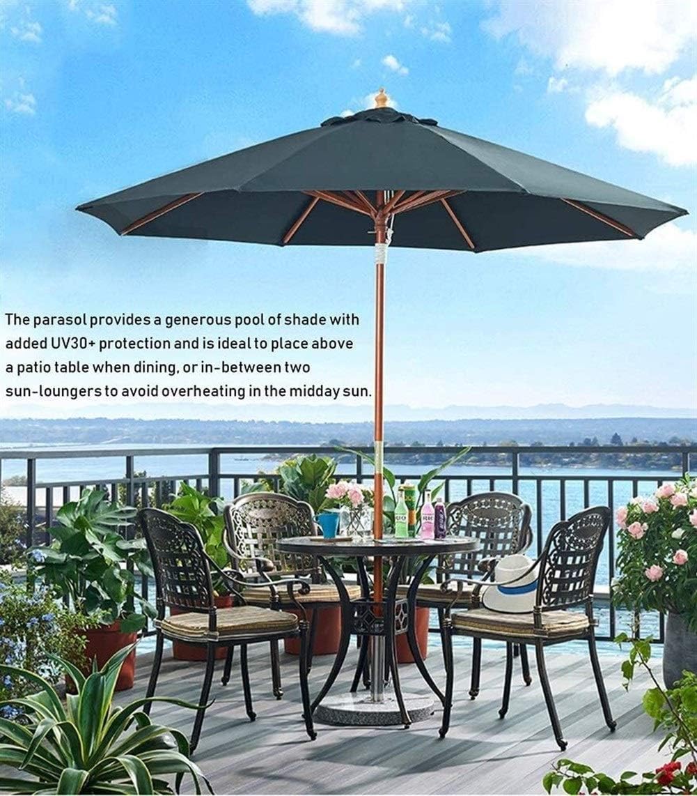 This parasol is an excellent choice for staying cool when it's sunny outside. The canopy filters most UV rays, keeping you protected from potential sun damage, as well as helping to reduce sunstroke. A beautiful and rather unique design which will pair with your existing garden decor effortlessly. Overview: - Umbrella Type: Market umbrella - Size: 9ft/270cm , 10ft/300cm (Optional) - Canopy Shape: Round - Pole: Wooden, Dia.1.50 inch (38 mm) - Umbrella cloth: UV resistant polyester fabric,Waterproof - Open method: Manual - Air vent: Yes. It provides basic wind and heat venting - Commercial/Residential: Both Tips: *Please close the umbrella when you do not use in bad weather so that the umbrella will have a longer performance. How to clean : Brush off loose dirt. Spray on a cleaning solution of water and mild soap. Use a soft bristle brush to clean. Allow cleaning solution to soak into the fabric. Rinse thoroughly until all soap residue is removed. Package Includes: 1x Outdoor umbrellas