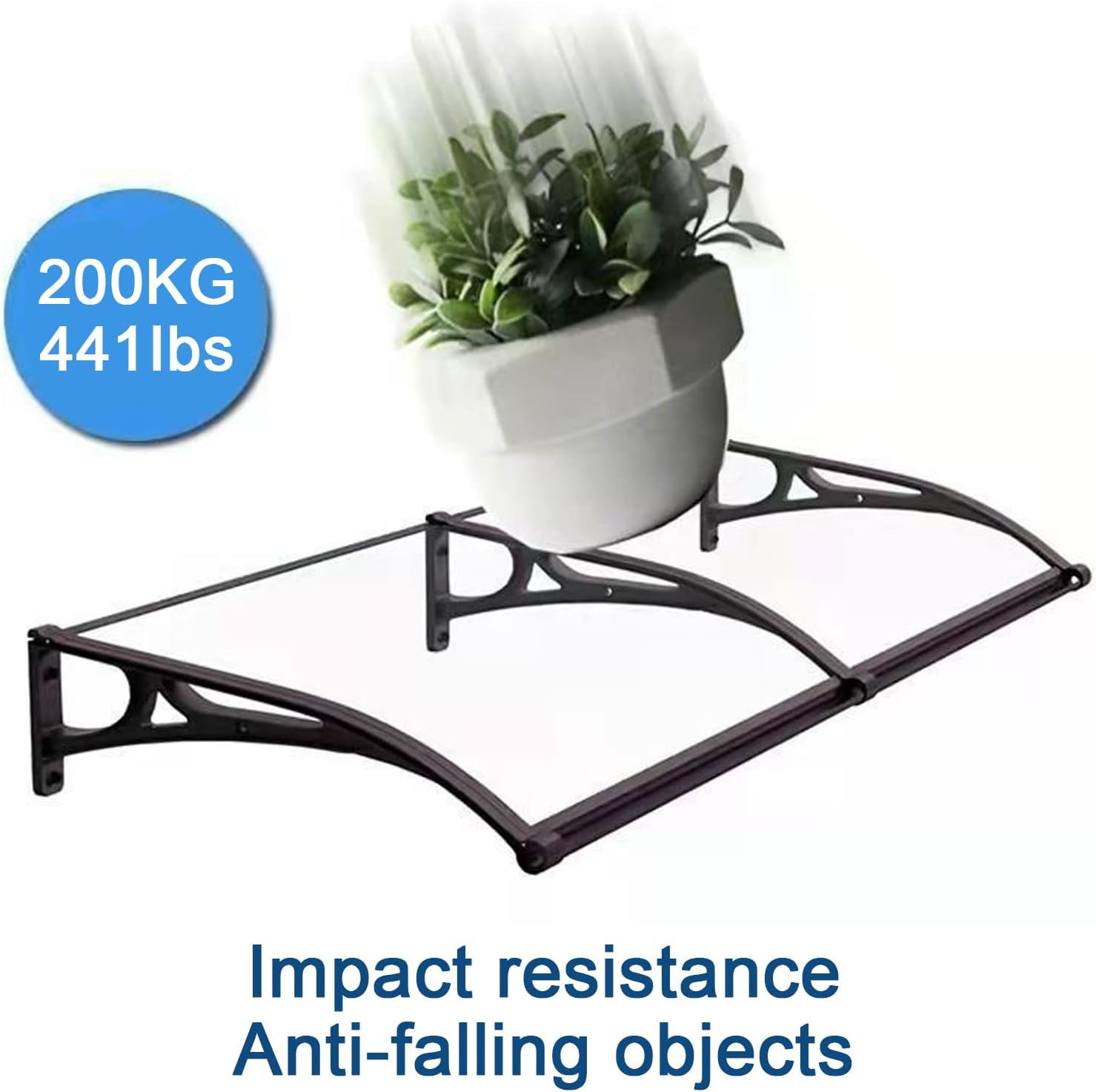 Outdoor shade canopies are the perfect addition to any home and business decor. The Expandable Awning is a high quality solution for sun and rain protection! Protect from the elements in every season. No matter the weather, don't let your guests get wet while waiting at the door. You will be praised! Strong hydrophobic performance, rainwater will not flow along the exterior walls and windows, you can open the doors and windows to breathe fresh air in rainy days! Noiseless canopy will not affect your sleep and your baby! Transparent design provides a clear view! Create a bright and friendly atmosphere. The PC board is self-cleaning through rainwater, and the maintenance-free design is great! Product name: door canopy Features: aluminum alloy large sink Material: Polycarbonate Bracket material: aluminum alloy Color: transparent board + black bracket Thickness: 2.5mm Dimensions: Width (protruding) x Length (against wall) Width: 60cm/24in, 80cm/31in, 100cm/39in, 120cm/47in Installation method: vertical installation Weather resistance: -40℃-120℃ Bearing capacity: 200KG/441 lbs The package includes: 1x door canopy (according to the number of panels) + aluminum alloy bracket + all accessories (sealing strip, expansion screw, self-tapping screw, aluminum strip) Kind tips: 1. Please measure the size of your window or door first, you can decide which combination is suitable for your needs. For customization, please contact us. 2. Due to manual measurement, there may be an error of 1-3mm. 3. If you have any questions, please feel free to contact us.