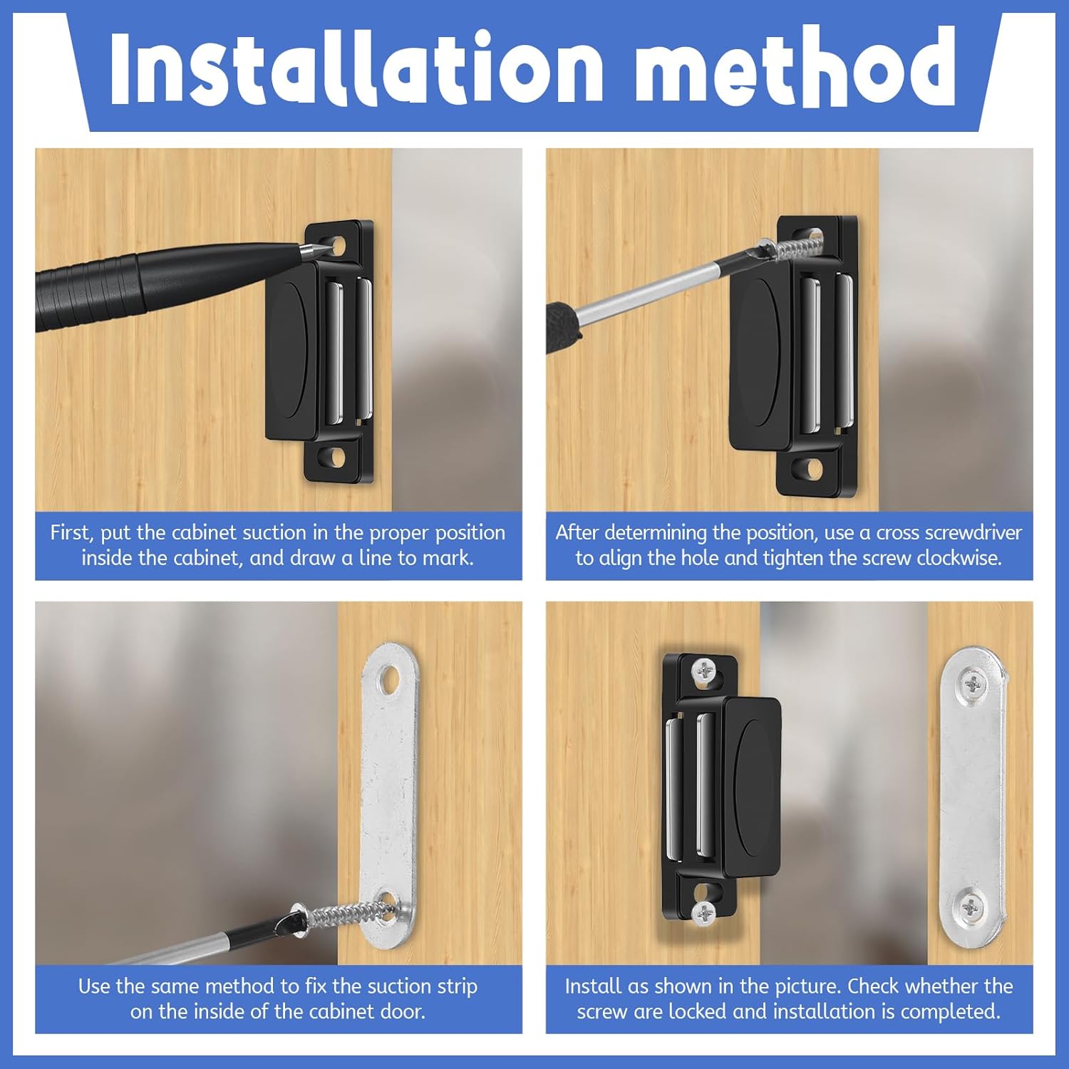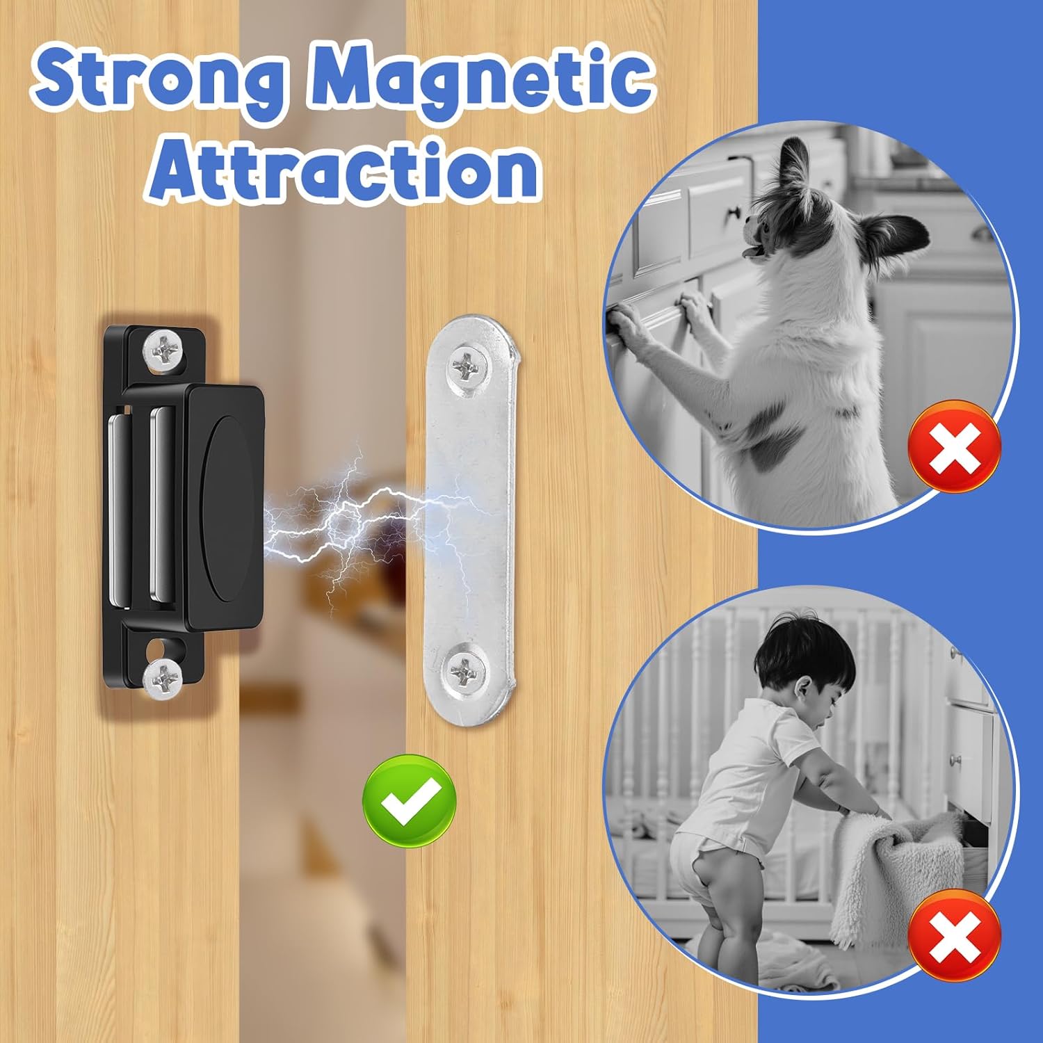 This practical set of 5 magnetic closures in an elegant black finish provides a reliable solution for all your cabinet doors and drawers. Made of high-quality ABS plastic in combination with sturdy iron and powerful magnets, the compact catches impress with their durability and constant holding power. In addition to five fully assembled magnetic catches, the set also includes twenty matching screws for immediate, low-tool installation. With their space-saving dimensions, the fasteners fit almost invisibly into furniture edges and are ideal for cabinet doors, showcases, dressers and drawers throughout the household - whether in the kitchen, in the children's room or in the home office. Despite their small size, the magnets develop a surprisingly strong holding force that reliably prevents unwanted opening.