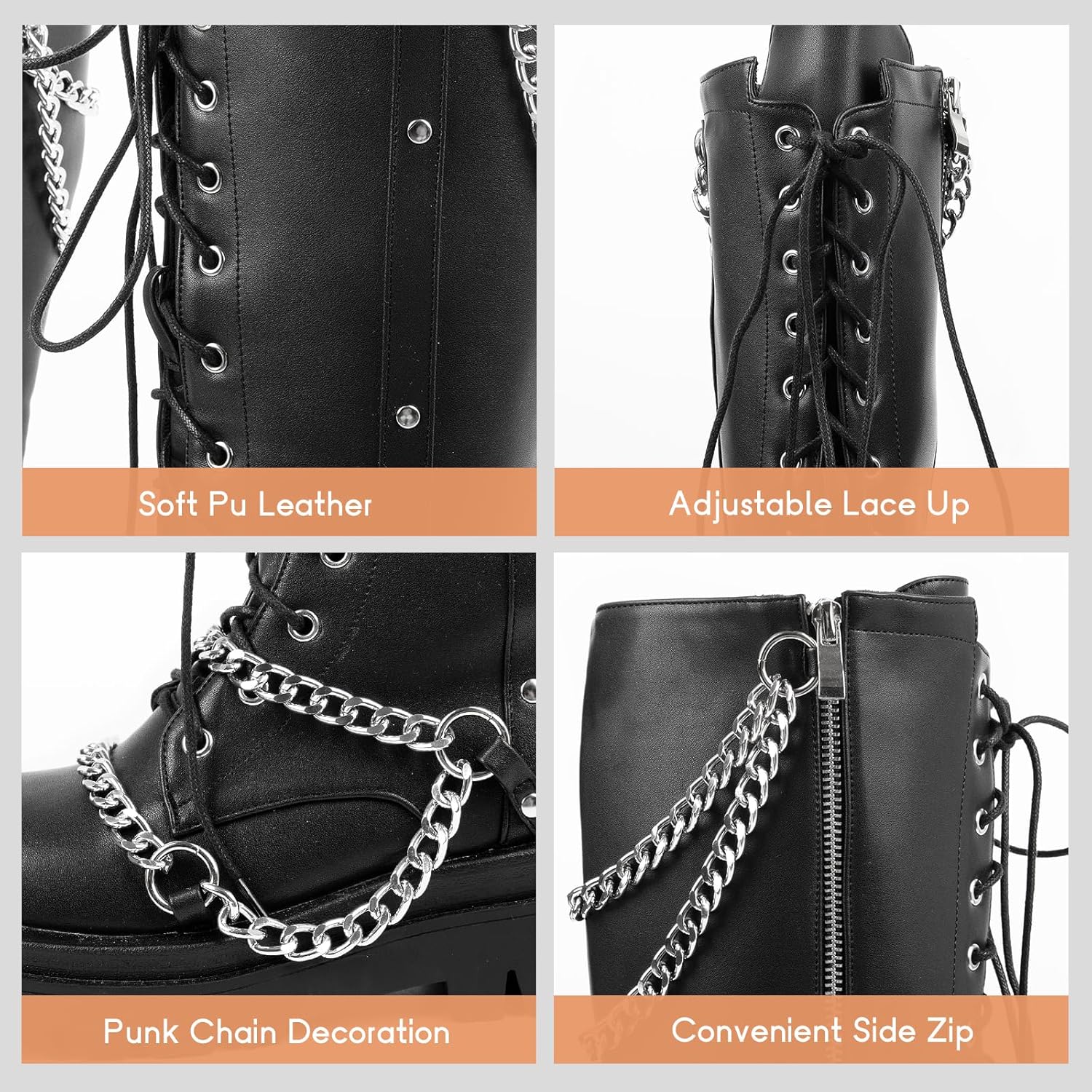 | Model Name | Parisuit Womens Goth Knee High Platform Combat Boots |