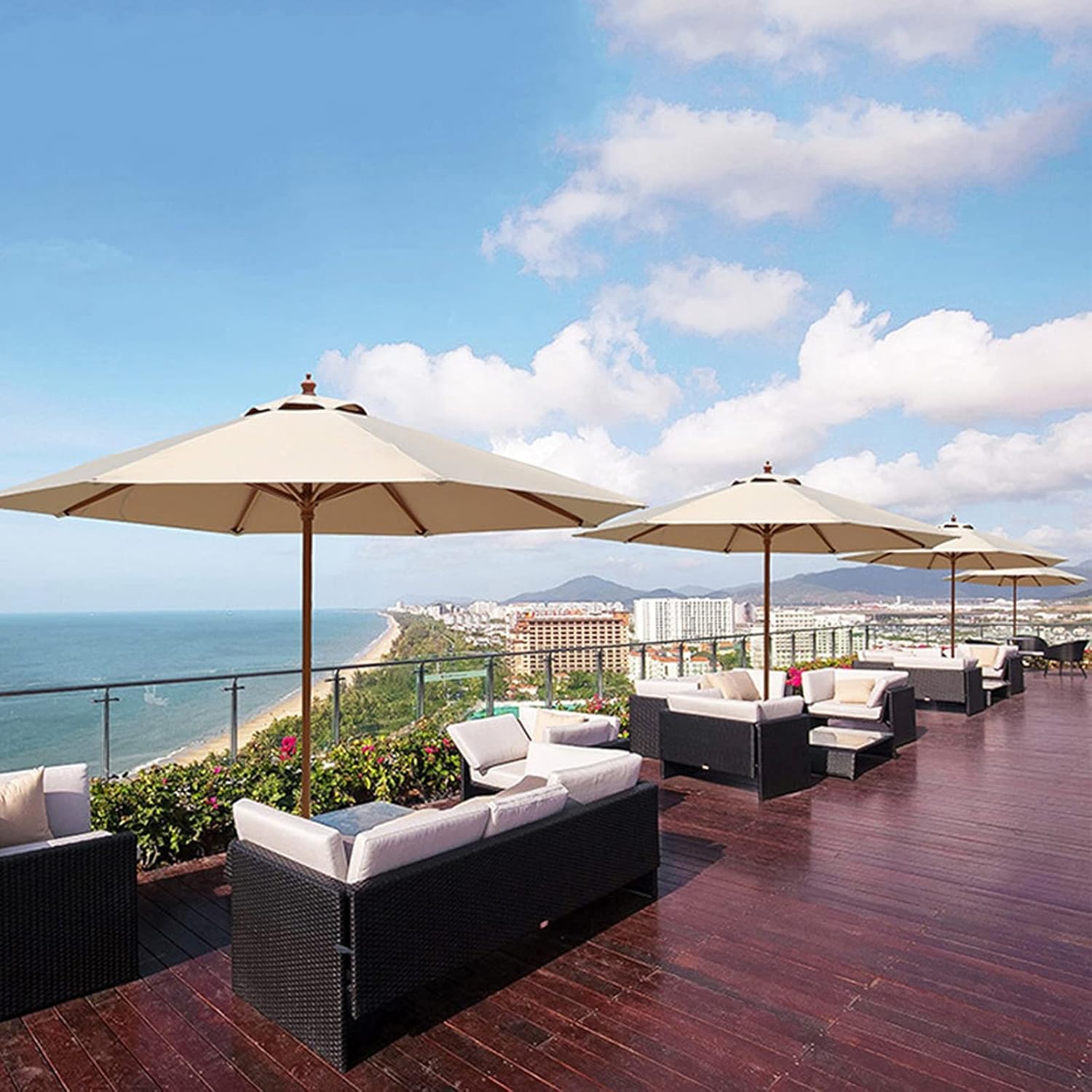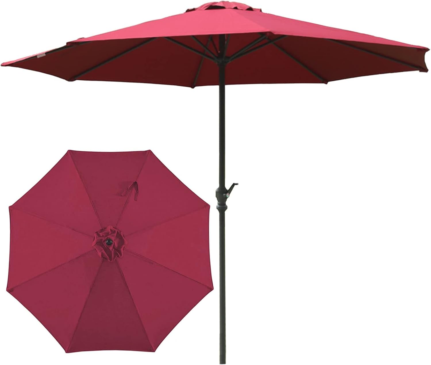 9 FT Patio Market Umbrella Outdoor Table Umbrellas, Market Center Umbrellas with 8 Ribs & Crank Handle, Outdoor Parasol for Garden, Lawn & Pool 10 FT Product Description Name: Outdoor umbrella canopy Color: dark green, wine red, khaki, Cream Beige. Specification: - size: Diameter 2.7m (9 feet)three meters (10 feet) Height 2.4m (8 feet) -Rod diameter: 38 mm (1.5 inches) -Material: high-quality polyester cloth + carbon steel -Number of ribs: 8 -Net weight: 6.5 kg (14.3 lb)7 kg (15.4 lb) feature: -Wide range of applications-Very suitable for terraces, gardens, beaches, swimming pools, hotels and cafes. -Durable and durable-The awning is made of waterproof polyester fabric; the vent design allows air circulation and preventsultraviolet rays, ideal for hot summer days. -Simple operation-Semi-automatic crank, easy to rotate to open or close, simple operation, very suitable for outdoor shading. -Space-saving storage-The detachable center column and the binding strap of the umbrella surface allow you to wrap the umbrella surface, saving space, and you can easily carry it on vacation. Notice: -The product is waterproof andresistant to light rain. In extreme rainstorms, water seepage may occur. Please put away your umbrella for protection. -Due to the difference of monitors and resolutions, there may be slight chromatic aberrations, please understand.