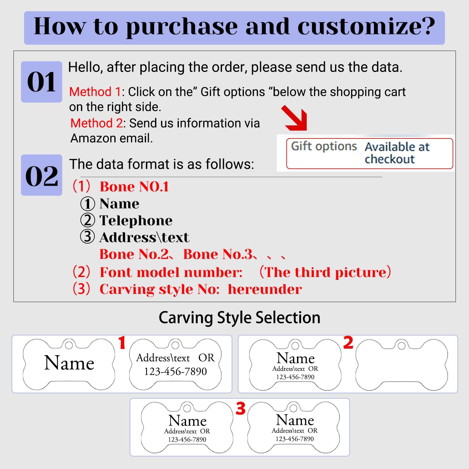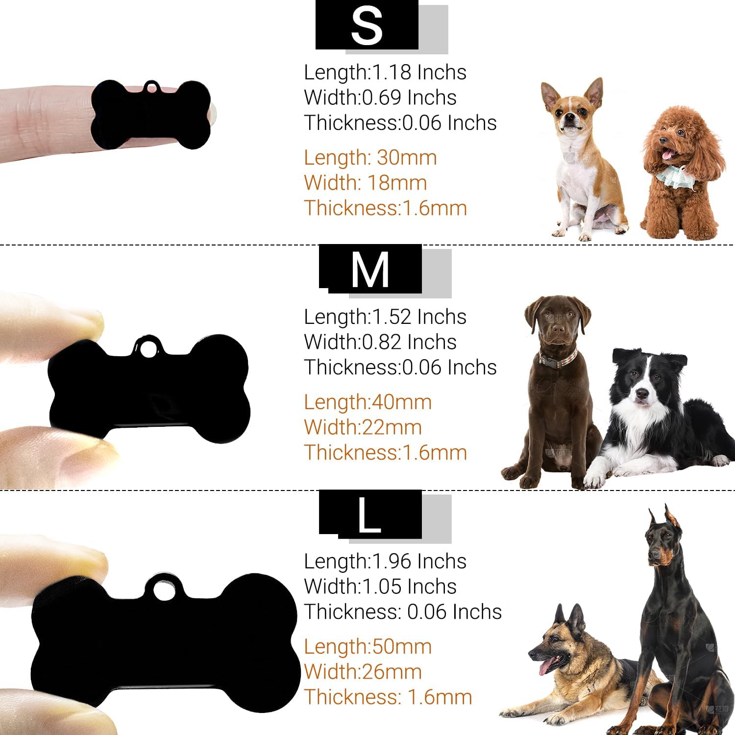 Personalised dog tags are the perfect way to keep your furry friend safe and identifiable. These customisable, bone-shaped tags are crafted from durable stainless steel and feature laser-engraved text and QR codes for easy identification. Available in four stylish colours - blue, yellow, silver, and black - and three convenient sizes, these tags allow you to engrave up to six lines of text with your pet's name, your contact details, and any other important information. Lightweight and comfortable for your dog to wear, these tags offer peace of mind knowing your beloved companion can always find their way back home. Order yours today and give your pet the gift of security and style.