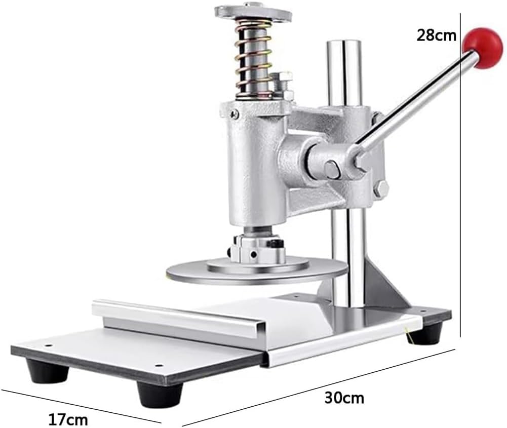 This machine is mainly used to press dough into pancakes. food grade stainless steel pressure plate and support plate.This machine designed with vertical manual pressure plate, automatic rebound via spring pulling ,saving time and effortSpecification:Name: Manual Pizza MachineMaterial: Stainless steelPressure plate diameter: 12cm, 14cm, 16cmSize: 30*17*28cmPackage Includes:1*Manual Pizza Dough Press MachineNote:To ensure a smooth operation and prevent sticking, we recommend applying a small amount of cooking oil to both the dough and the press before use.If you have any questions, you can contact us by email at any time. We will reply you within 24 hours, we are honored to provide you with satisfactory service