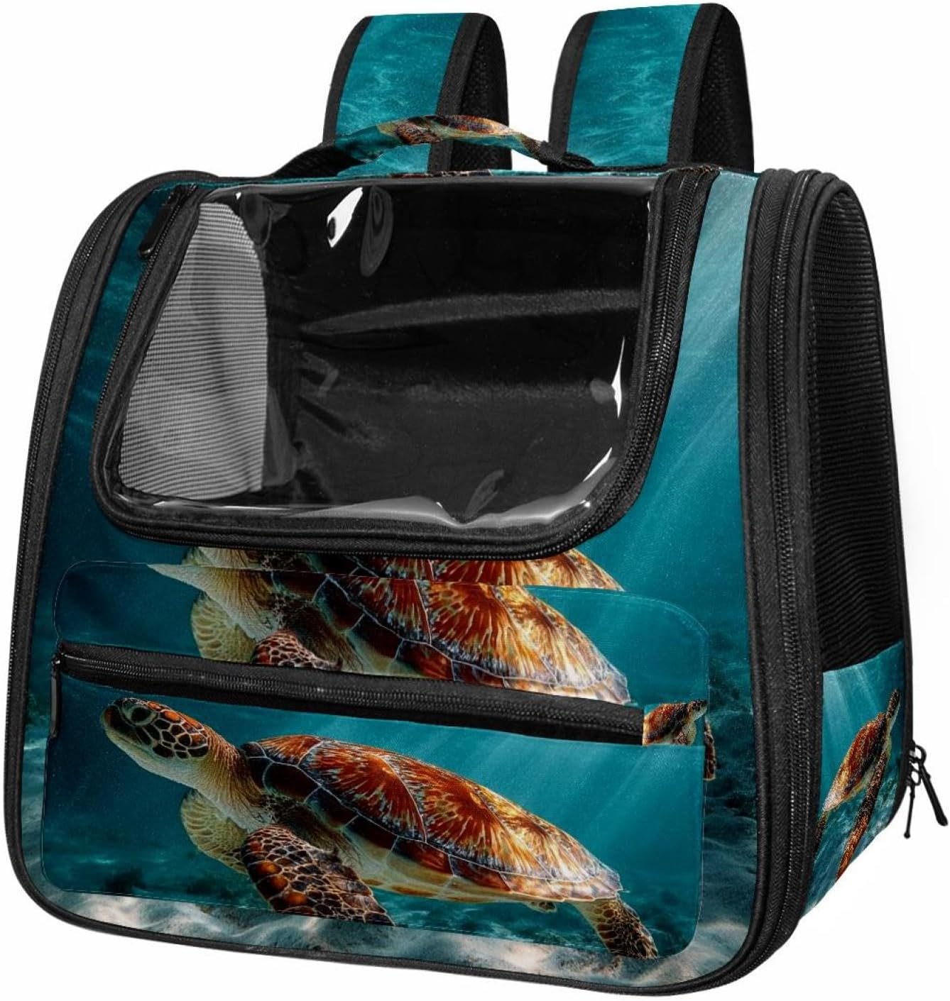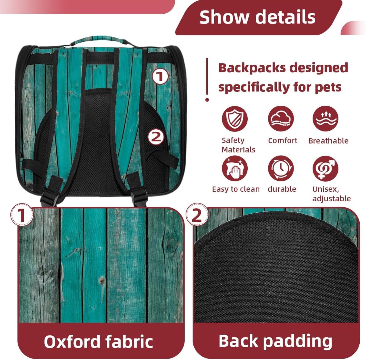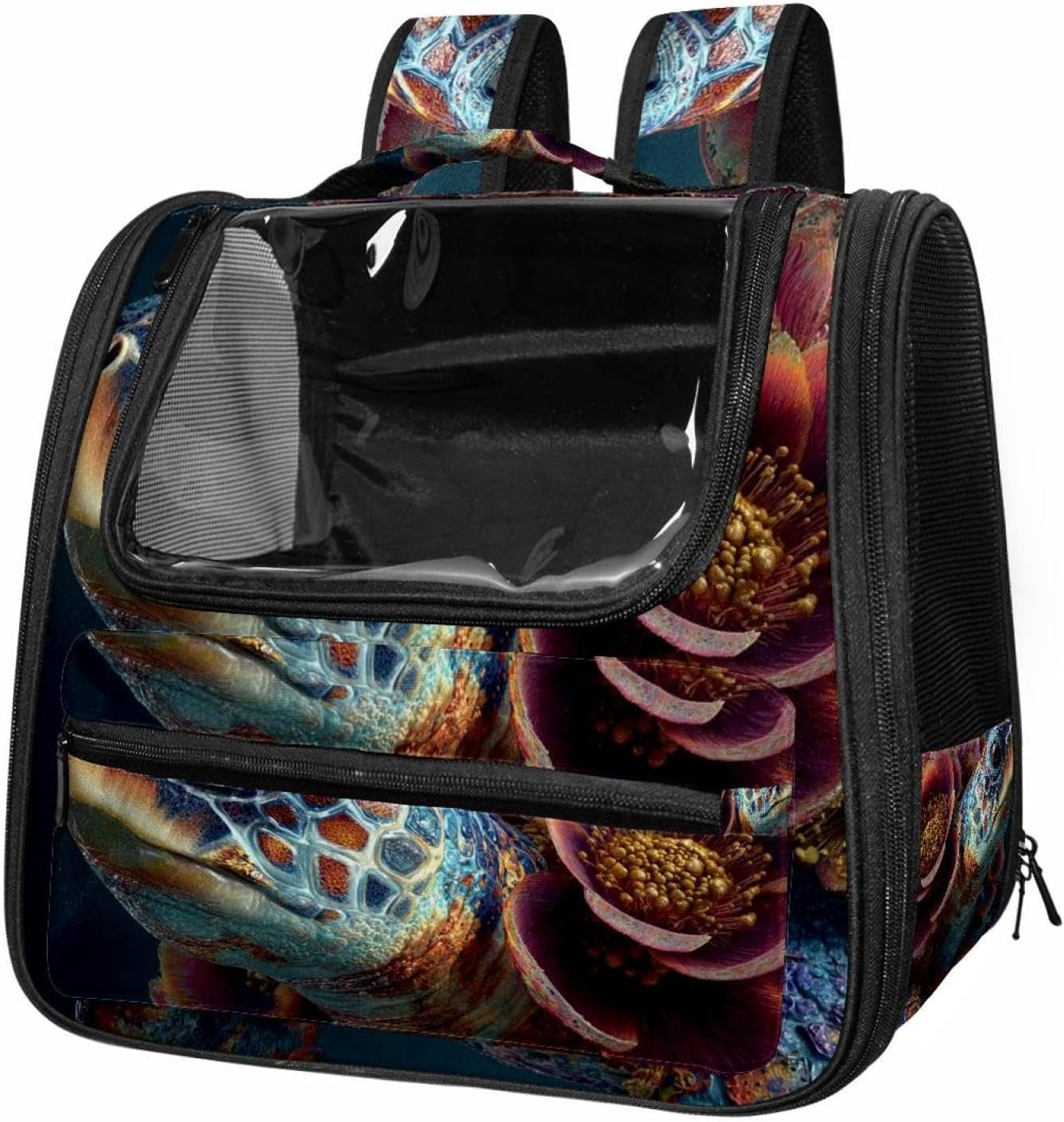 Well made: Cat Backpack Carrier is made from 900D oxford fabric, pp webbing, velvet, nylon, which is very sturdy, environmentally friendly and breathable. Not easily scratched by pet’s claws, pet backpack carrier is SAFETY & ANTI-SCRATCH. The back padding will give you a comfortable and breathable experience. Ventilated Backpack: With a breathable window in the front, this pet backpack allows cats to enjoy the sun without feeling stuffy. There are two side pockets and one big front pocket, and you can take foods or toy for your kitten pet. It is big enough for cat to turn around, and there are side pockets and hook holes, you will enjoy the greatest convenience when taking your cat out. Perfect size: Cat carrier is 15.75x9.84x13.78in/40x25x35cm. Fits most small/medium sized cat, dog, and pet. Quality fleece bed provide a comfortable place for your pet. Lightweight and easy to carry to all places. Built-in harnesses keep your naughty friends from escaping. Removable cosy mat for easier cleaning and let your pet enjoy it inside. Easy to carry: The adjustable shoulder strap of pet carrier bag help you hands-free carrying and makes it the most safe and convenient pet carrier bag for your travel. Seat belt design provide pets with safety protection throughout the trip. Pad protection keep your pets comfortable during travel. Unique Design: Innovative inside graphic design gives you a stereoscopic 3D visual experience. You also send us the photos you interest to make your unique dog or cat carrier. Pet bag is also a amazing gift for pet lover.