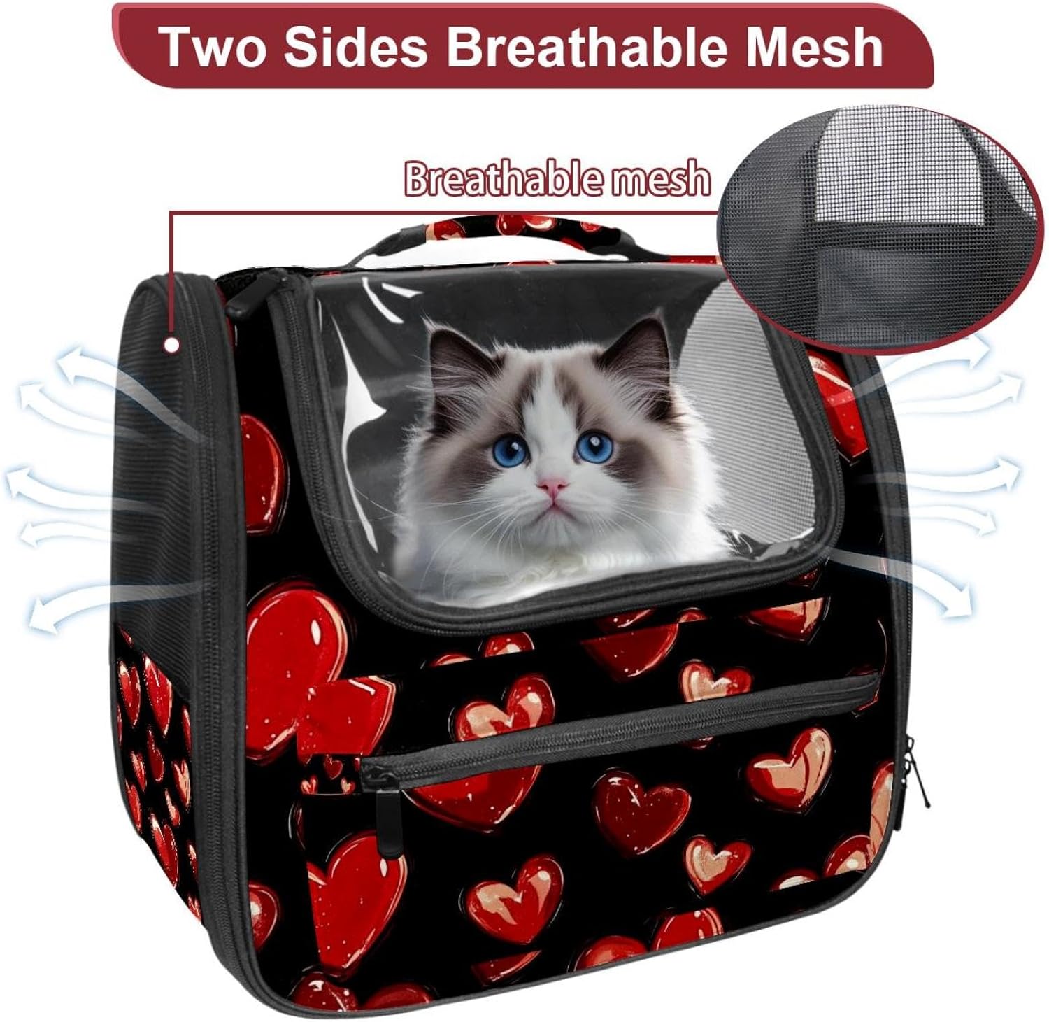 Well made: Cat Backpack Carrier is made from 900D oxford fabric, pp webbing, velvet, nylon, which is very sturdy, environmentally friendly and breathable. Not easily scratched by pet’s claws, pet backpack carrier is SAFETY & ANTI-SCRATCH. The back padding will give you a comfortable and breathable experience. Ventilated Backpack: With a breathable window in the front, this pet backpack allows cats to enjoy the sun without feeling stuffy. There are two side pockets and one big front pocket, and you can take foods or toy for your kitten pet. It is big enough for cat to turn around, and there are side pockets and hook holes, you will enjoy the greatest convenience when taking your cat out. Perfect size: Cat carrier is 15.75x9.84x13.78in/40x25x35cm. Fits most small/medium sized cat, dog, and pet. Quality fleece bed provide a comfortable place for your pet. Lightweight and easy to carry to all places. Built-in harnesses keep your naughty friends from escaping. Removable cosy mat for easier cleaning and let your pet enjoy it inside. Easy to carry: The adjustable shoulder strap of pet carrier bag help you hands-free carrying and makes it the most safe and convenient pet carrier bag for your travel. Seat belt design provide pets with safety protection throughout the trip. Pad protection keep your pets comfortable during travel. Unique Design: Innovative inside graphic design gives you a stereoscopic 3D visual experience. You also send us the photos you interest to make your unique dog or cat carrier. Pet bag is also a amazing gift for pet lover.