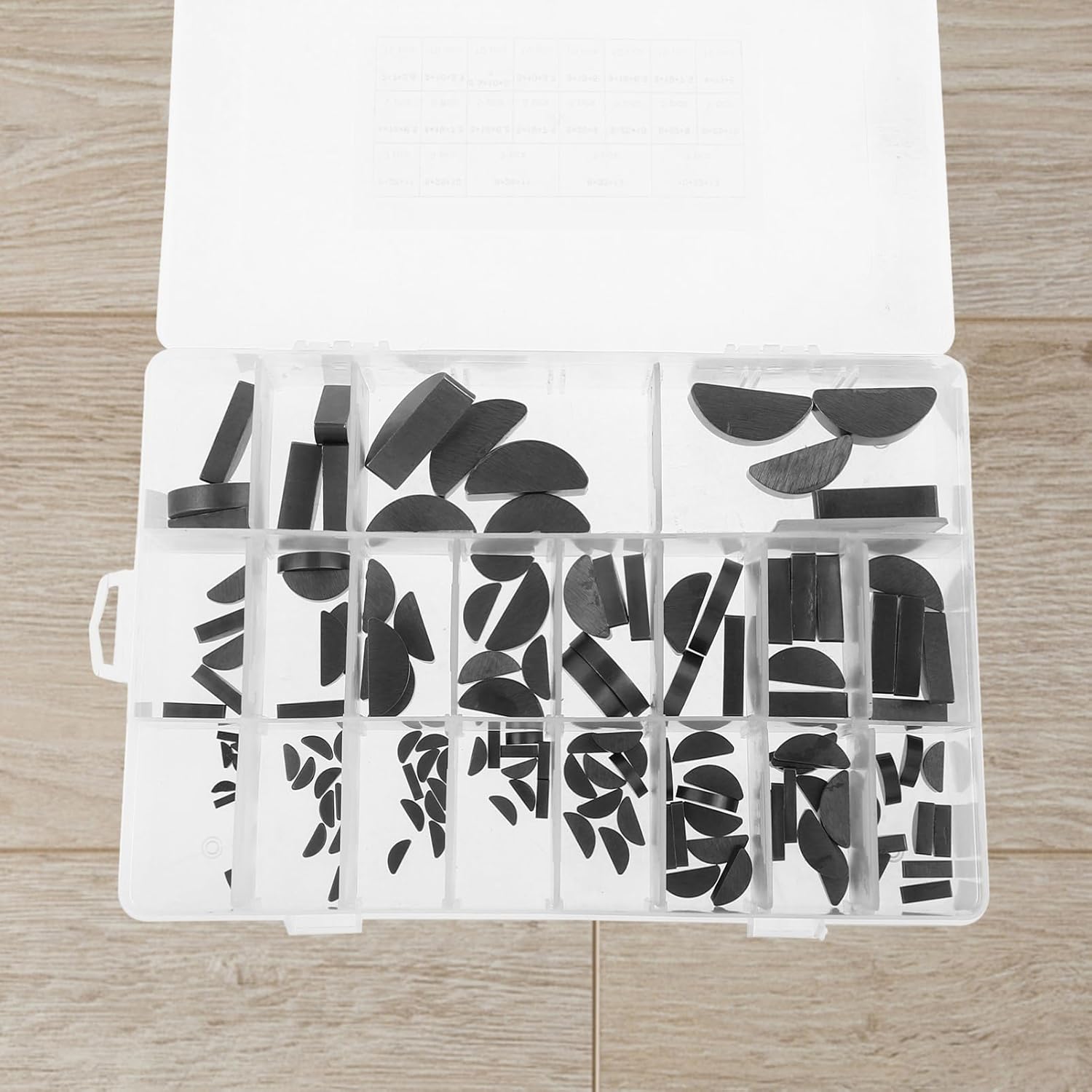 Package Include 135 x Assortment Woodruff Keys 1 x Storage Box Characteristics -Size range: m2- m10c woodruff key assortment -Material:Carbon steel keyway assortment set -Color:Silver keyway assortment carbon steel -Size:19.50X13.00X3.50cm/7.66X5.11X1 carbon steel keyway assortment. - Crafted with precision from carbon steel for exceptional durability and performance woodruff key metric. - Woodruff key assortment set featuring different type of keys for various keyway assortment kit. - Comprehensive assortment of woodruff key to cater to a wide range of mechanical needs woodruff key set. - Each key is meticulously designed to ensure a fit, designed for pulleys and drive shaft key stock keyway set. - set suitable for both professional mechanics and DIY enthusiasts woodruff key assortment set.Goods Informationcarbon steel keyway assortment Woodruff key is ideal for use in different setting, suitable for hub adjustment, for installation and repair tasks in various settings.woodruff semicircle key the compact packaging of this woodruff key set makes it easy to carry around and store, ensuring convenience and portability