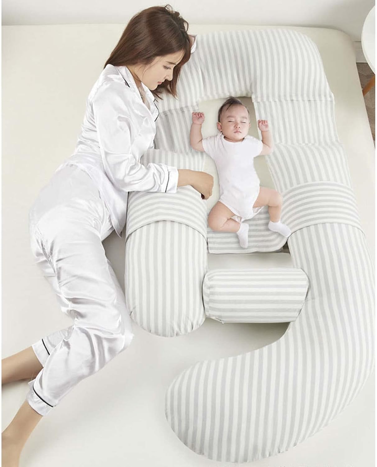 Name: Maternity Pillow Material: Cotton Size: 175x80cm Color: white, , blue About this product: U-shaped maternity nursing pillow. Helps keep the whole body relaxed and relieve stress. Helps support the sides and back, abdomen, arms and neck. Easily roll over and adapt to different sleeping positions. Removable and machine washable.