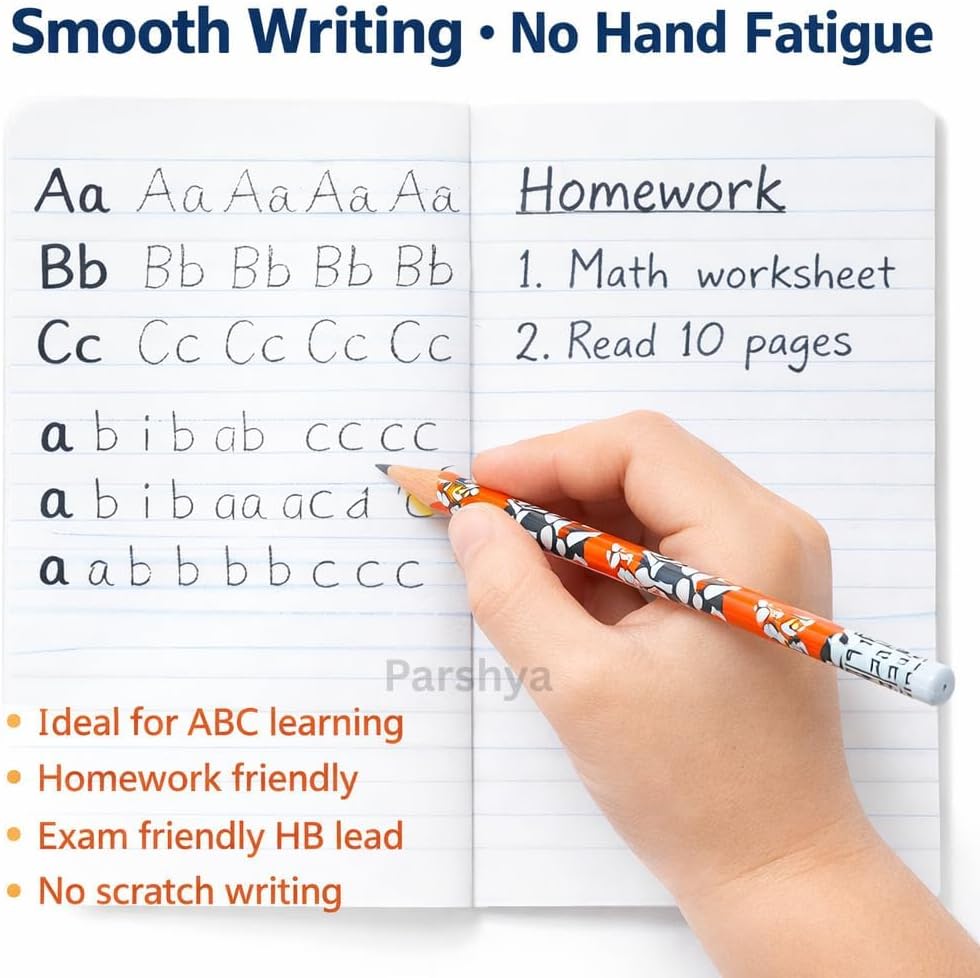 Upgrade your child’s stationery collection with the Parshya Premium HB Pencil Set. Whether it’s for a budding artist or a student heading back to school, these pencils offer the perfect blend of functionality and fun.Made from imported Linden wood, these pencils are incredibly durable and easy to sharpen. The HB Graphite core is engineered for "Super Dark" performance, ensuring that handwriting stands out clearly on any paper type. We understand that long writing sessions can be tiring, which is why our pencils feature an ergonomic triangular shape to help kids maintain a comfortable and steady grip.The highlight of this set is the collection of colorful erasers that sit right on top of the pencils! They aren't just for show—they erase cleanly without tearing the paper. This set is a top-rated choice for parents looking for high-quality school supplies or unique, budget-friendly return gifts for birthday parties.