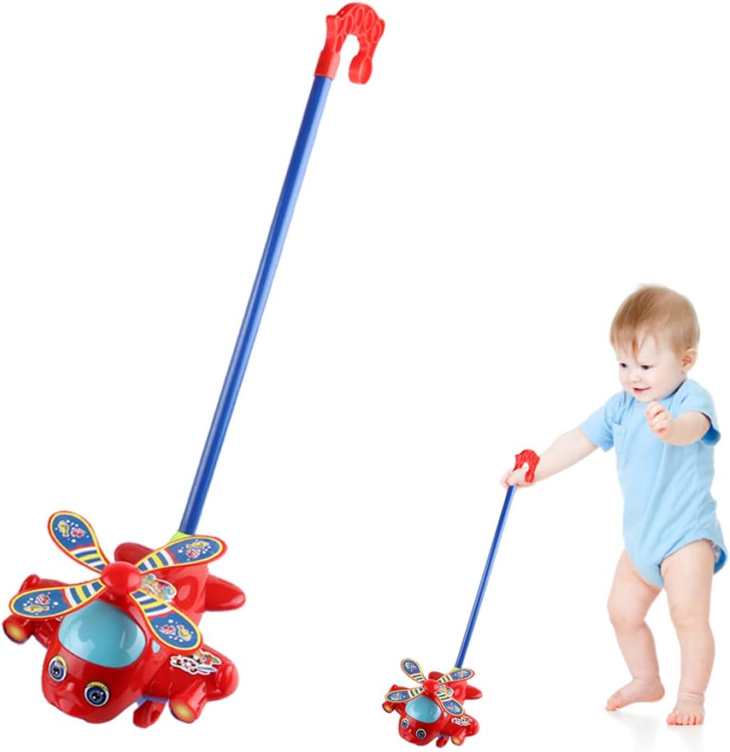 Description: This classic push along toy provides hours of entertainment for babies. It is a good way to exercise. It encourages babies to actively participate, run around with cute airplanes, and learn to walk. The rubber wheels are very quiet and leave few on the wooden floor. When the toddler pushes this toy throughout the house, she will walk forward happily. Features:. Push Along Toy. -Color: Random Color. -Material: Plastic. -Size: Airplane: 18x19x13 cm/7.09x7.48x5.12 inch. Long handle length: 45 cm/17.72 inch. Note: 1. The color in the photo may vary slightly due to lighting and different screen. 2. Please allow 1-3 cm deviation due to manual measurement. Package Including 1 * Push Along Toy