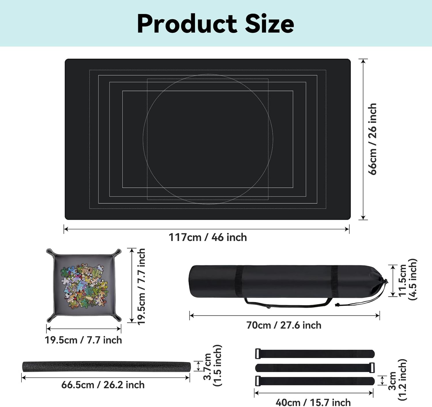 | Included Components | Drawstring Storage Bag × 1, Elastic Bands × 3, Foam Tube × 1, Puzzle Mat x 1, Puzzle Sorting Trays x 4 |