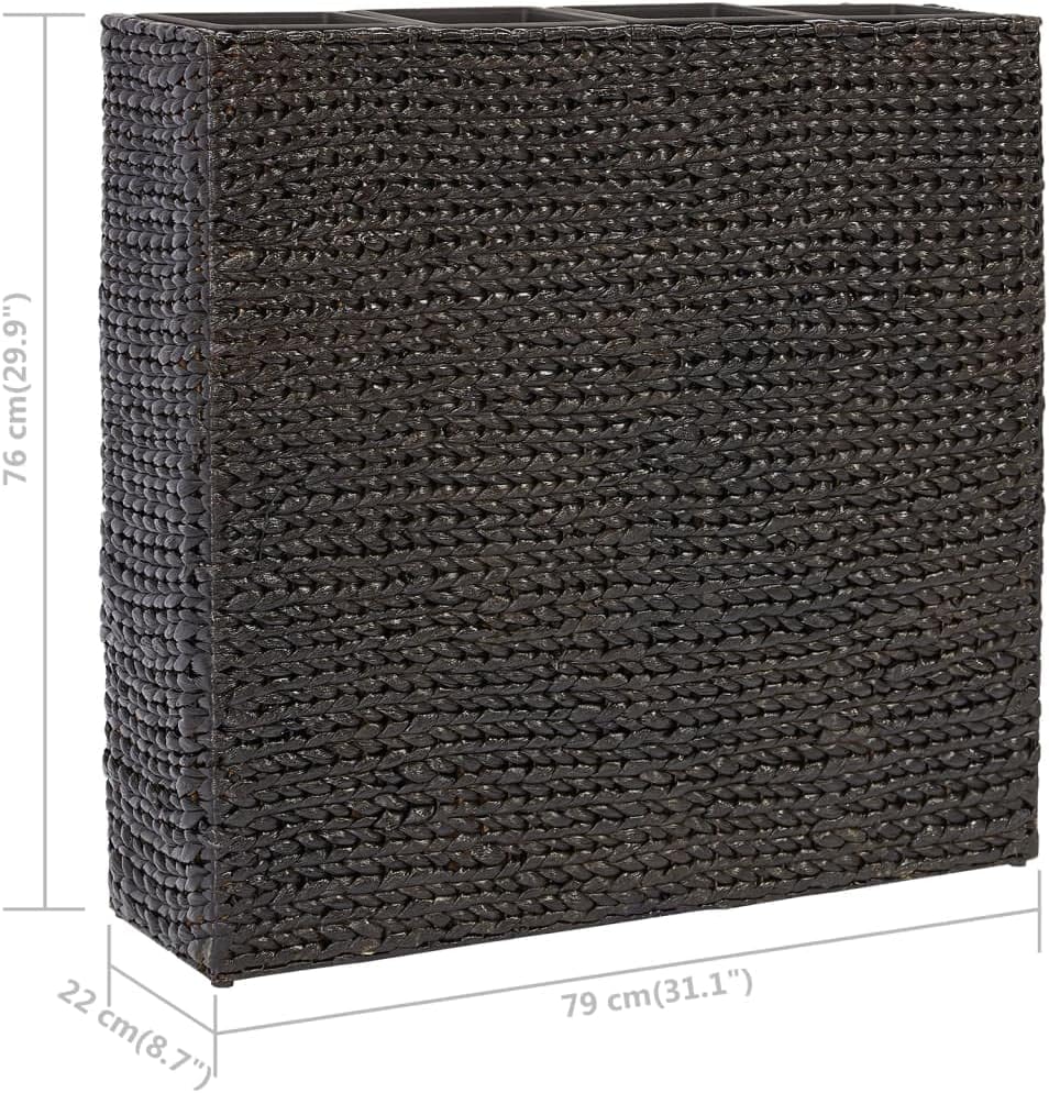 This raised bed planter is a stylish and functional addition to any home, designed to improve your space while offering a smart solution for indoor gardening. With its modern black finish and natural materials, it creates an attractive displayfor any living room or balcony.Natural Material: Made from water hyacinth, this planter has a unique texture and look that stands out in any decor. The fibers are aesthetically pleasing and eco-friendly, making it a sustainable choice for your home.Adjustable Features: The removable covers mean you can keep your plants in top shape easily, and switch the covers out when you want, extending the planter's life.Multi-Pot Design: With four removable pots, this planter lets you mix and match plants, making it great for flowers or herbs and letting you show off your greenery stylishly.Spacious Dimensions: At 31.1 in x 31.1 in x 29.9 in, this raised bed provides plenty of room for a variety of plants, making sure your creations have the space they need to thrive while fitting nicely into your living area.Contemporary Style: The sleek design of this planter keeps up with current trends, letting it blend seamlessly into modern decor, making it amatch for any stylish home.Color: Black Shape: RectangularMaterial: Natural Water hyacinthIndoor/Outdoor: Indoor OnlyRoom: Living RoomCapacity: 4 potsDimensions: 31.1 x 31.1 x 29.9 in (W x L x H)Weight: 10.8 lbsDrainage: NoDelivery Contains: 1 planter, 4 removable potsAssembly Required: No