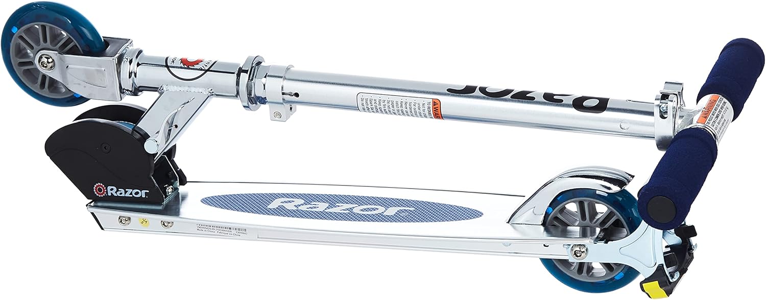 This scooter bundle pairs the classic Razor A kick scooter with the spark-generating Razor Spark kick scooter for double the fun. The Razor A scooter is the original kick scooter that set the standard for safety and durability when it launched in 2000. Made of lightweight yet strong aircraft grade aluminum with an easy fold and carry mechanism, adjustable handlebars, rear fender brake and urethane wheels, the Razor A provides a smooth, comfortable ride. For extra excitement, the Razor Spark adds a foot-controlled sparking mechanism that generates 20% more sparks than competitor brands. Its additional replaceable spark cartridges let you customize your sparking experience. With its spark bar and 20% increased spark capacity, the Razor Spark complements the Razor A's classic design. Together these two scooters offer both classic cruising and sparking action for kids and teens. Their high quality materials and adjustability allow riders to grow with these scooters while expressing their personal riding styles.