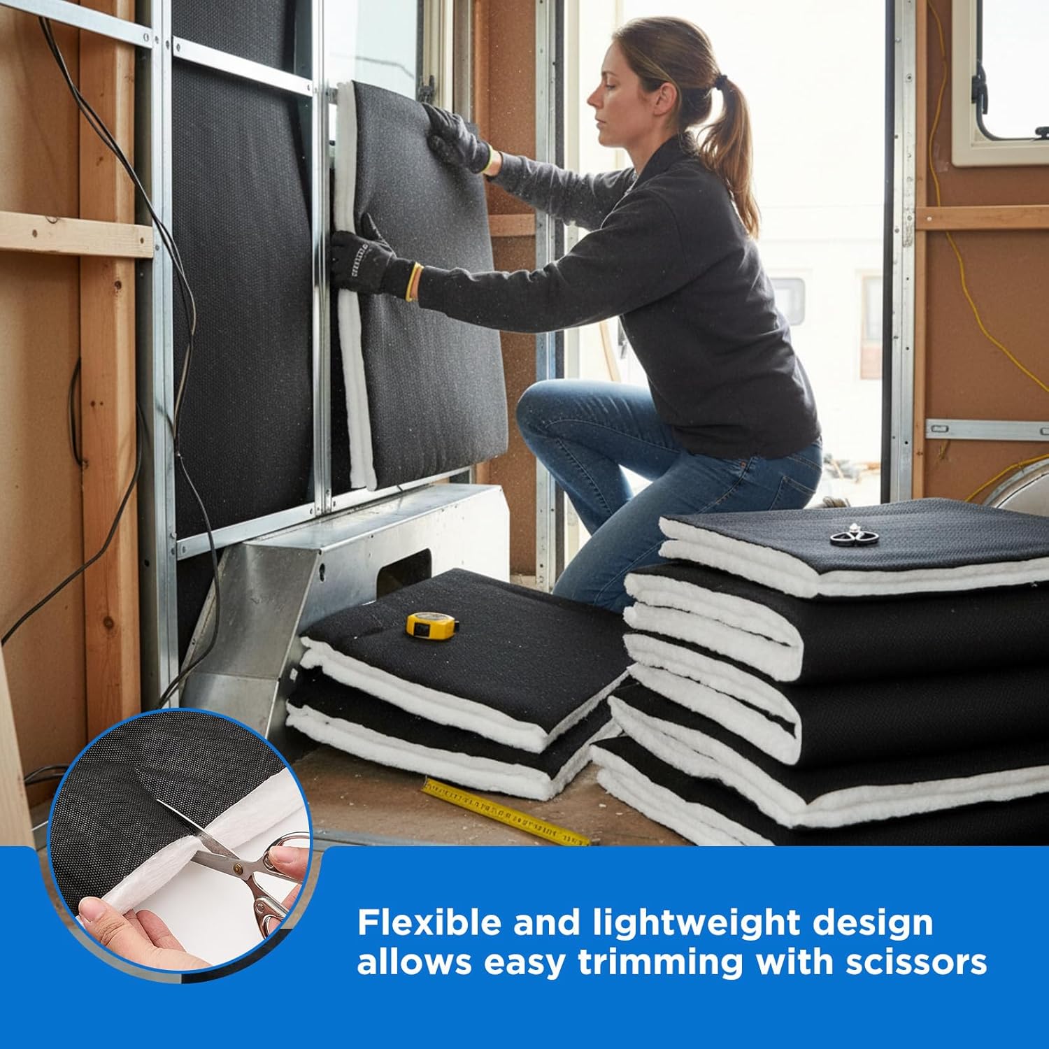 Features: The lightweight and flexible material is ideal for flooring, walls, and rooftop applications. Available in a variety of sizes, it easily adapts to MPVs Utilizing highly efficient insulation, effectively retains warmth inside your RV, making it comfortable and at home in cold weather Specifications: Material: cotton, PP+PET Color: black, white Size:total length 59 x 177 inches/ 5 x 15 FT, 1.38 inches/ 35 mm thick Package includes: 3 X Insulation 1 X Scissors Notes: Manual measurement, please allow slight errors on size. The color may exist a slight difference due to different screen displays. Pointed items are included, please be careful when using and please keep them away from kids