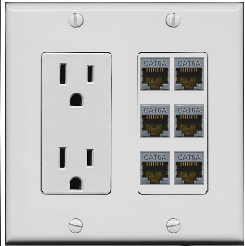 | Included Components | 15 Amp/125V Power Outlet, 2 Gang Frame, 6 x Female Jacks (Assembled), Screws |
