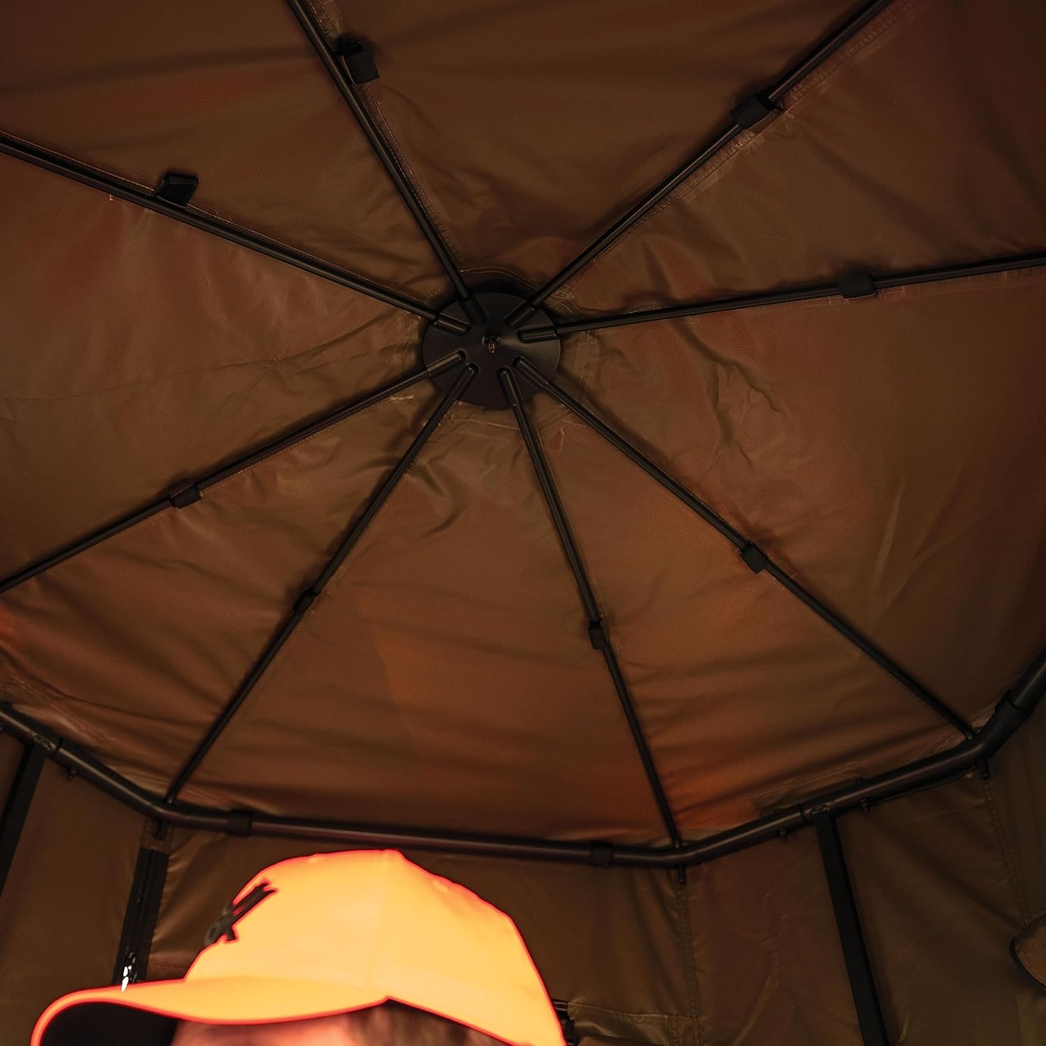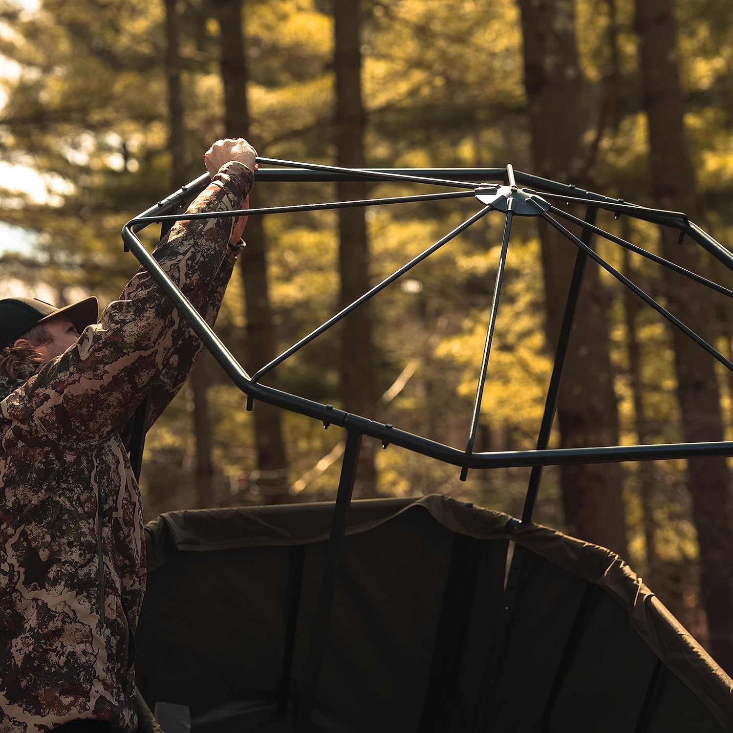 Protect yourself from the elements with the Lockdown™ 360 Roof Kit. This added coverage can easily be added to your Lockdown™ 21’ 360 ladder stand set up. It is constructed from solution-dyed fabric that is designed to withstand the elements. Unlike traditional fabrics used on roof kits this one is rugged and won’t fade or deteriorate over time. The Lockdown™ 360 Roof kit features four zippered windows that provide a 360-degree view for optimal shooting options. In addition, the windows are height adjustable to provide just the right cover. The framework is built with heavy-duty steel poles that provide a rigid structure from the wind and rain. The Lockdown™ 360 Roof Kit attaches to your Lockdown™ 21’ 360 Ladder Stand and get be done quickly and easily prior to installing your ladder. Add a Lockdown™ 360 Roof Kit to your set up for comfort and concealment during your hunt.