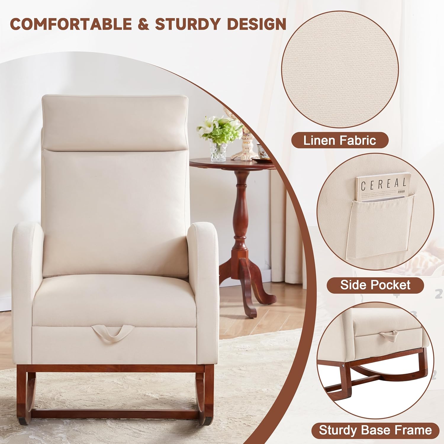 | Item Type Name | Rocking Chair Nursery Chair with Foot Rest, Nursery Rocking Chairs with High Back, Glider Rocking Chair with Pocket, Baby Nursery Glider Rocker, Nursing Chair Accent Living Room (Linen Beige) |