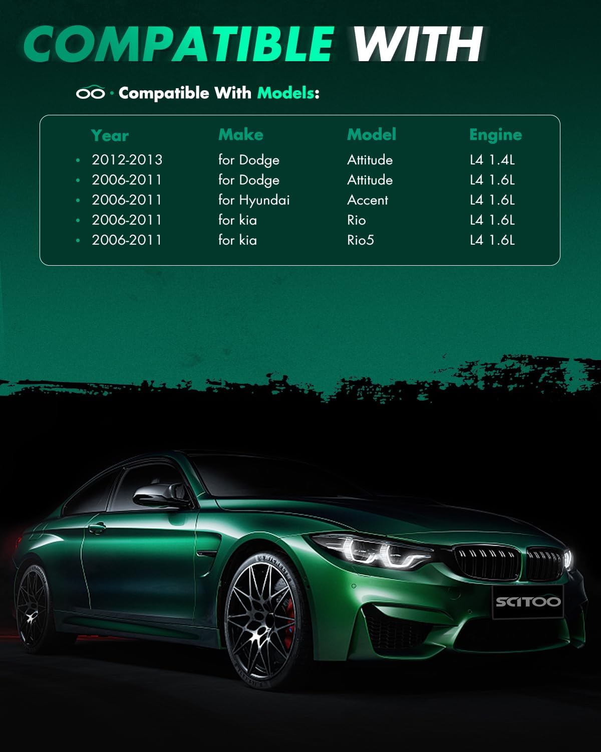 | Compatible with Vehicle Type | for kia Rio5 1.6L 2006 2007 2008 2009 2010 20for kia Rio 1.6L 2006 2007 2008 2009 2010 20for Hyundai for Accent 1.6L 2006 2007 2008 2009 2010 20for Dodge Attitude 1.6L 2006 2007 2008 2009 2010 |