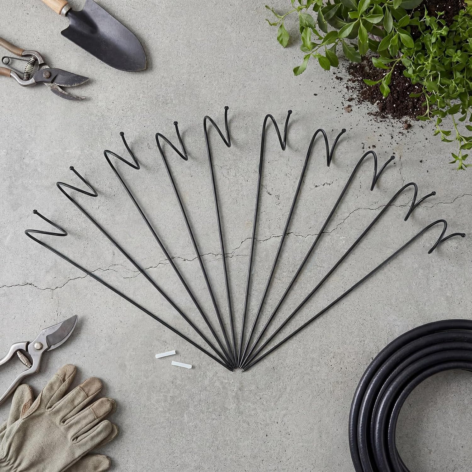 Features: Protects and preserves your plants: Our garden hose guides are essential tools for any gardener, shielding plants from accidental hose damage. By safely guiding the hose away, you preserve the natural beauty of your garden, preventing unintentional suppression and ensuring plant health. Idea gift for garden enthusiasts: Looking for a thoughtful gift for a gardening friend or loved one? Our beautifully crafted hose guide stakes are not only practical but also make an ideal present, appreciating the passion and dedication of any garden lover. Specifications: Material: iron Color: black Size: about 14.5 x 3 inches Package includes: 10 x Ball end hose guard Notes: Manual measurement, please allow slight errors on size. The color may exist a slight difference due to different screen displays.