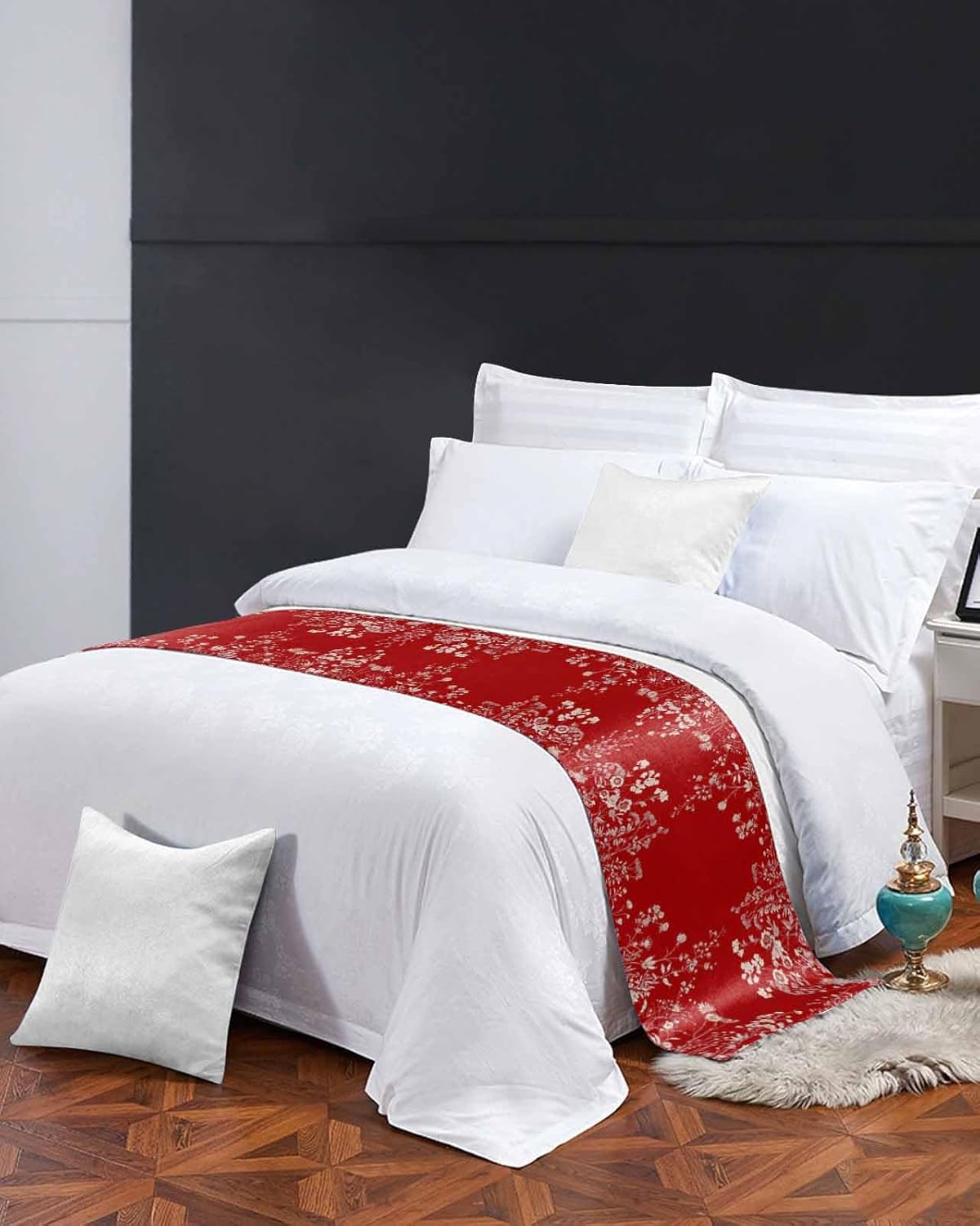 Grandly introducing our Bed Runner Scarf, a must-have accessory for any bed. Premium Bedding RunnerThese bed scarves are made from high-quality 100% polyester satin fabric material. With its beautiful design and soft texture, it adds a touch of elegance to your bedroom decor, making it look more sophisticated and inviting.Bed Protection ScarfNot only does the bed runner scarf enhance the appearance of your bed, but it also serves a practical purpose. It acts as a protective layer, preventing dirt, pet paw, everyday wear and tear from damaging your bedsheet or comforter. It keeps your bed clean and tidy, ensuring a clean and comfortable sleeping environment.All Season SuitableThis bed end runner scarf is designed to be versatile, suitable for all seasons. No matter the time of year, you can rely on the bed throw runner to provide the perfect level of comfort.Decorative BeddingSuitable for any room, this bed throw blanket is not limited to just your bedroom. It can also be used in guest rooms, kids room, pension, B&B, hotels, RVs, or as a thoughtful gift for any occasion. Whether you're looking to add a touch of luxury to your own bed or to surprise someone with a beautiful and practical home decor item, our bed cover scarf is the perfect choice.Easy to MaintainOne of the standout features of this bed runner for foot of bed is its easy maintenance. It is machine washable, allowing for a convenient cleaning process. Simply toss it in the washing machine, and it will come out looking as good as new. The colors remain vibrant without fade, even after multiple washes.Transform your bedroom into a stylish and cozy haven with our bed runner scarf. Its great design, endurance, and easy maintenance make it an excellent investment for any home.