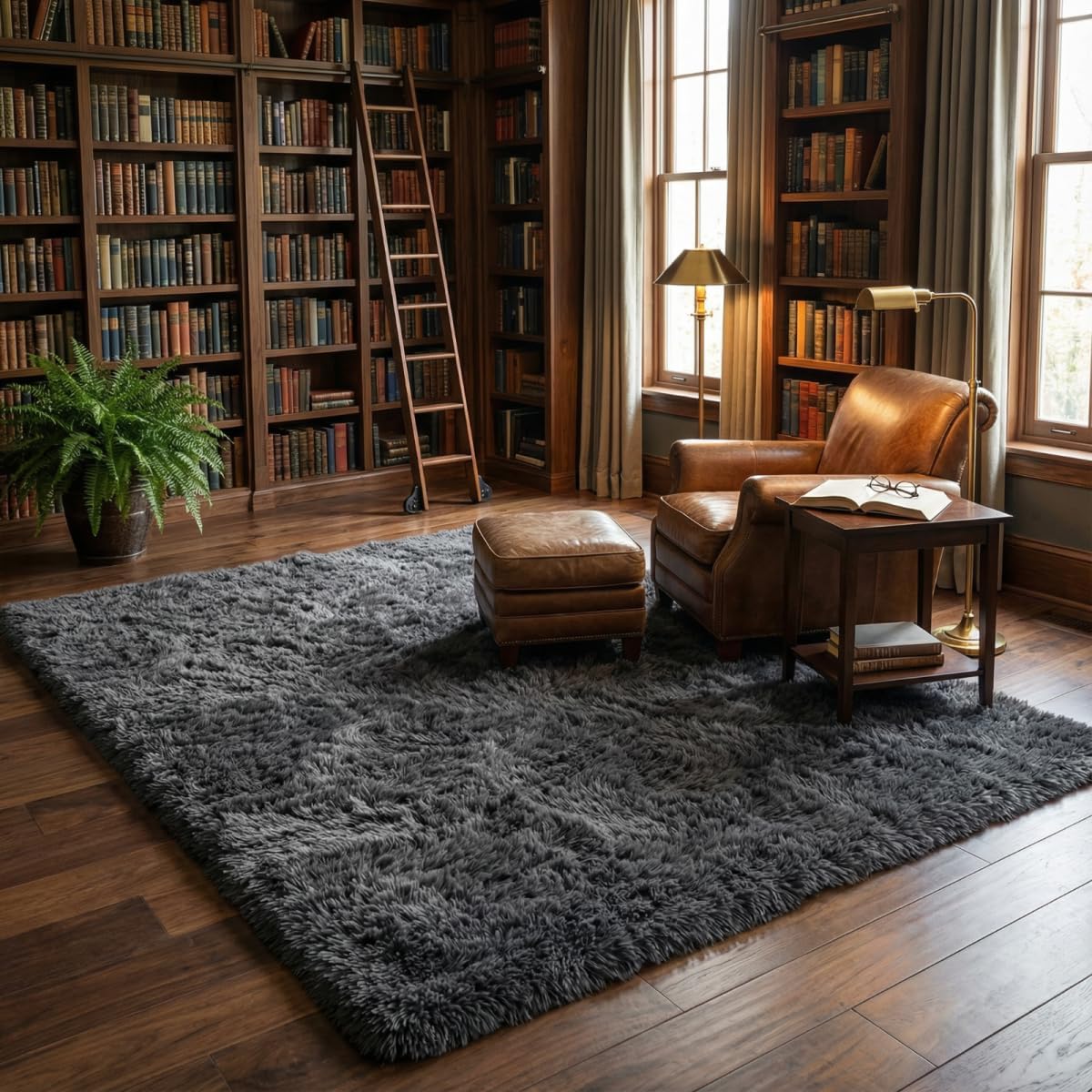 Soft Fluffy Area Rugs for Bedroom,7x10 Area Rug Shaggy Plush Carpet, Non-Slip Fuzzy Rug for Living Room, Kids Room, Dorm, Cozy Home Decor,Dark Grey