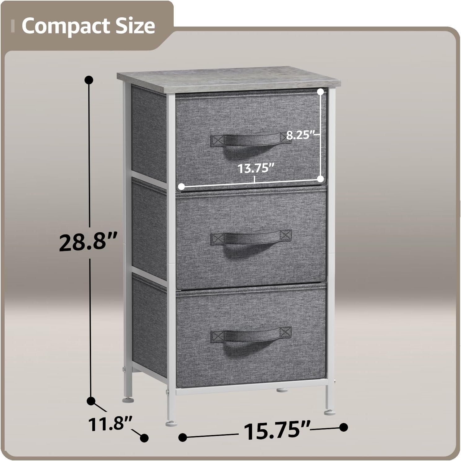 | Size | 11.8"D x 15.8"W x 28.8"H (3 Drawers) |