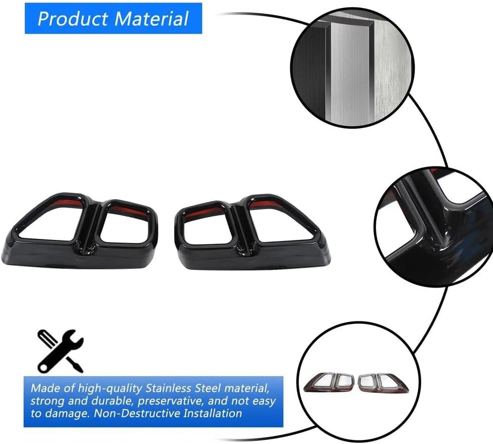 Exhaust accessories designed specifically for car enthusiasts can not only enhance the appearance of your vehicle but also optimize exhaust flow and improve engine efficiency.Material: Made Of High Quality Stainless steelPackage include: 2 piecesEasy install,back with double-sided adhesiveFeatures:It can improve the overall appearance of the vehicle, make the rear of the car more beautiful, and increase visual appeal.It can prevent the deformation of the car tail pipe and extend the service life of the exhaust tail pipeA great way to decorate your car.Simple installation, no drilling or welding required.Tail throat protection upgradeSelect high-quality materials to improve the grade of the productNon-destructive installation on the original car/easy and convenient installation