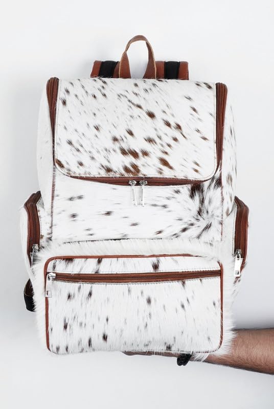 Western Diaper Bag - Cowhide Hair Print Leather Diaper BackpackDiscover the ideal gift for new moms! Our collection of stylish and functional diaper bags is designed with modern moms in mind. Made from premium cowhide leather, these western-style bags are both fashionable and practical. With plenty of pockets for bottles, diapers, and wipes, they're a must-have for moms on the go. Whether it's a shower gift or a stylish accessory for yourself, our bags have you covered. Please note that each bag is unique due to the organic material used. find the perfect bag for you and your little one!Features Details:This backpack is the perfect accessory for those who value organization and style. The Travel backpack features a leather exterior with a cow print pattern that adds personality and flair. It also has a smaller front pocket with a zipper closure. The Cow backpack has two adjustable shoulder straps which ensure ease and comfort during carrying. It's durable, spacious, and functional, and can be used as a travel backpack too.These cowhide fur backpack are made from the premium selection of leather cowhides.Texture: FurStyle: BackpackFeatures: LightweightMaterial: Cowhide + leatherColor: Brown and WhitePattern: Animal PrintClosure: Zipper