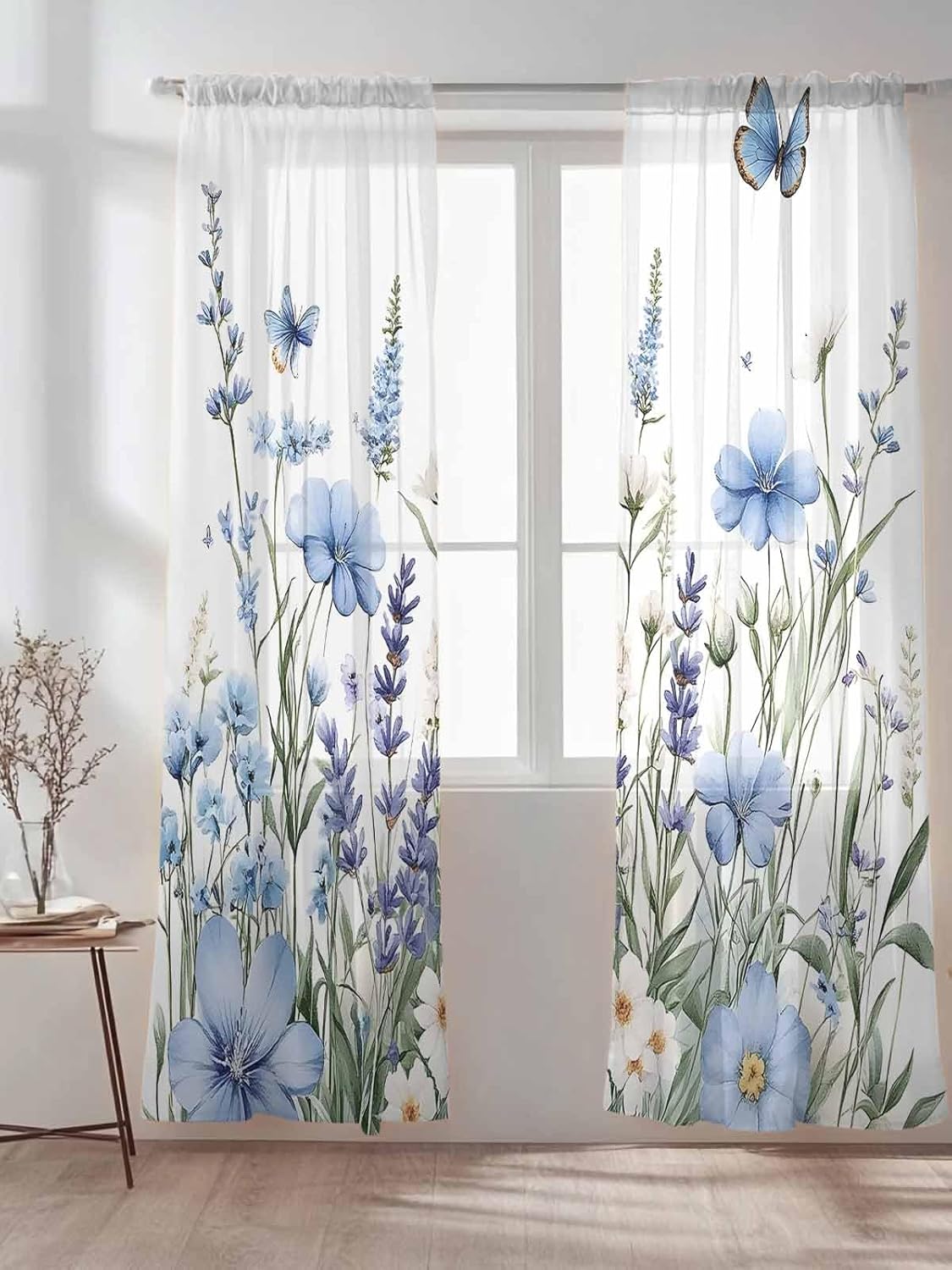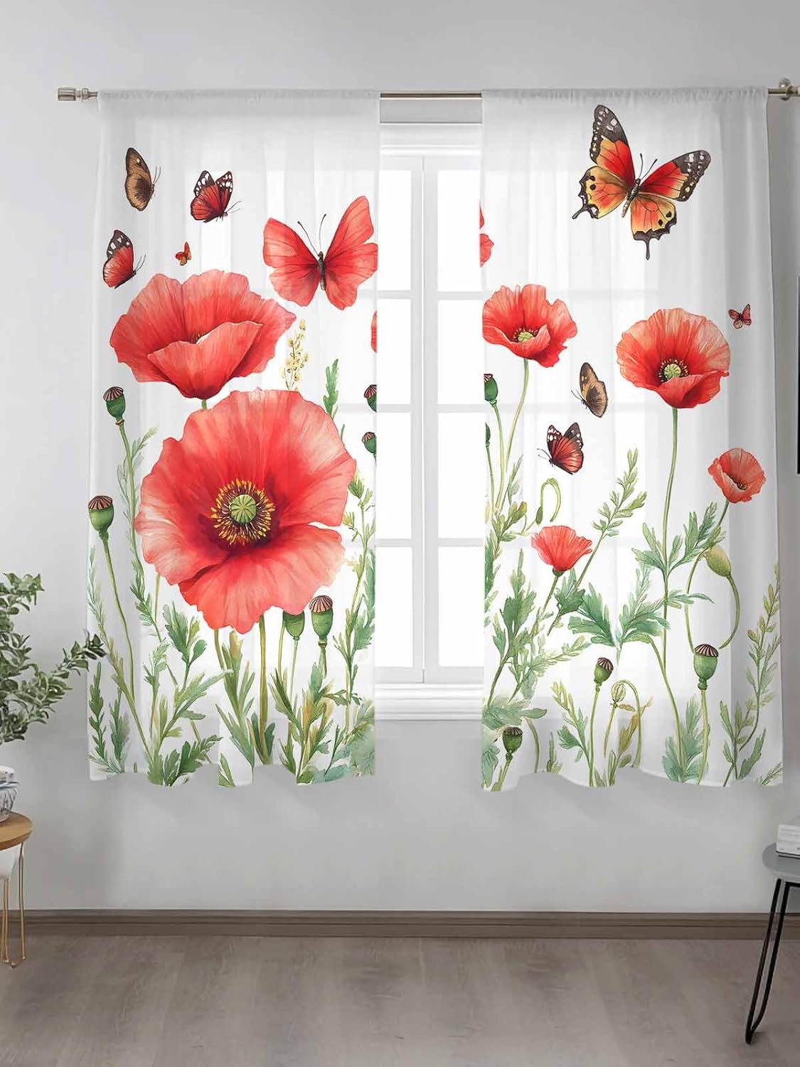 Size: 52"W x 45"L 52"W x 54"L 52"W x 63"L 52"W x 72"L 52"W x 84"L 52"W x 96"L 52"W x 108"L Material: 100% polyester Package Includes: 2 panels Rod Pocket Design: 3” diameter rod pocket top design makes this sheer curtain easier to hang or slide. Light Filtering: Lightweight curtains allow sunlight to filter through while reducing harsh sunlight. Wide Use: Sheer curtain panel set is suitable for living room, bedroom, dining room, kitchen, patio door, office, etc. Holiday Gift: Sheer curtains 84 inches long are good choice of Christmas, Valentine's Day, St. Patrick's Day, Easter gift