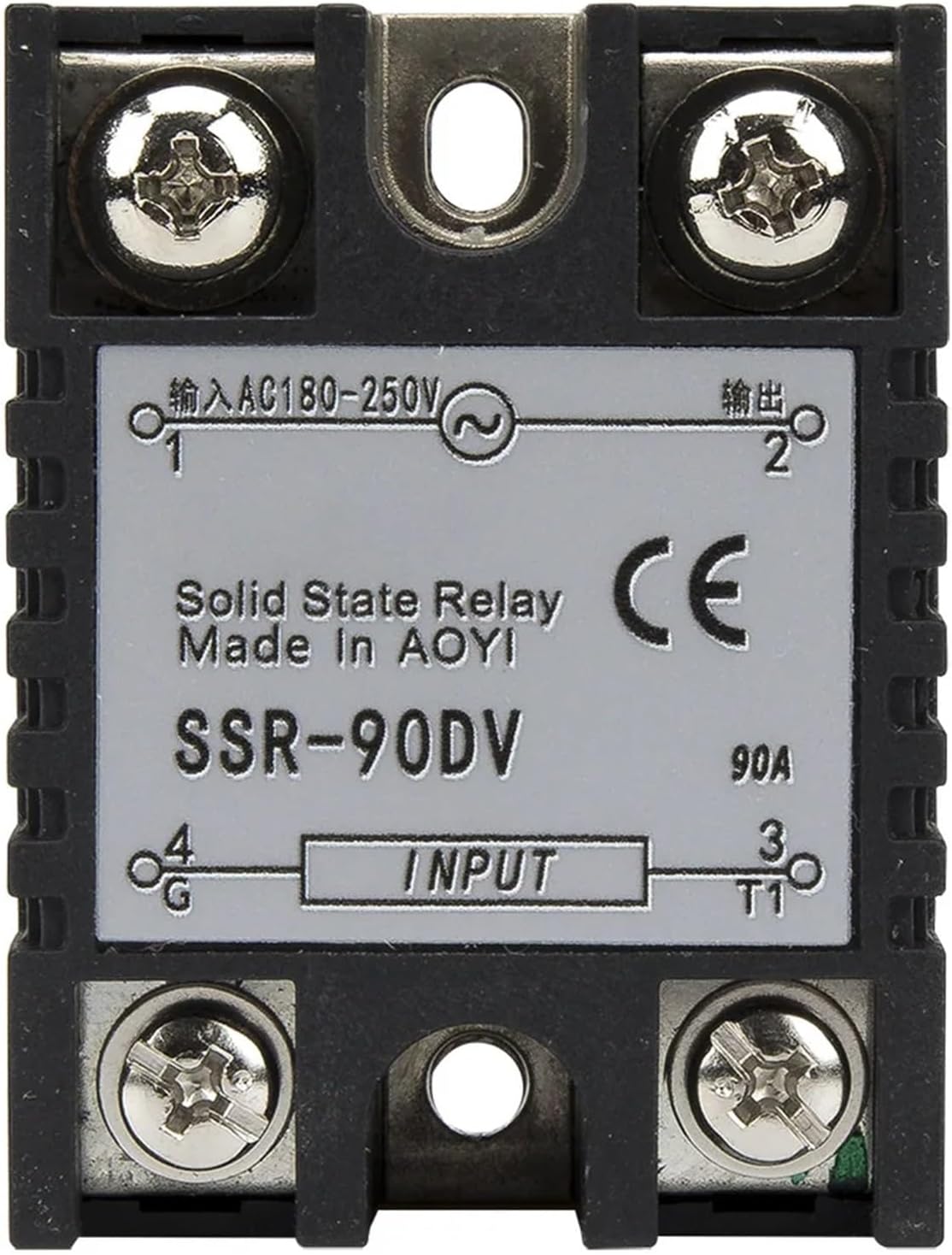 relayRelaySingle phase solid state relay for voltage regulatorModel number and parametersModel numberLoad currentLoad voltageRelated productSSR-10DV10A175-250VACOrderSSR-25DV25A175-250VACOrderSSR-40DV40A175-250VACOrderSSR-60DV60A175-250VACOrderSSR-75DV75A175-250VACOrderSSR-90DV90A175-250VACVisiting...Suitable maximum load powerLoad current (A)102540607590220V resistive load power (KW)1.12.84.46.68.39.9220V inductive load power(KW)0.40.81.31.92.42.9GeneralModel numberSSR-DV seriesRated input control currentVoltage regulator (DC3-25mA)Control typeSCR Voltage regulatorInput-ON indicationLEDOn-state leakage current4mA maxOn-state voltage drop at Imax1.5VacMatched heat sink40A: FHSI01-50 60A: FHSI02-50 120A: FHSI03-100Matchedthermal greaseHZ-KS101Dielectric strength2000VAC 50/60Hz for 1 minuteInsulation resistance500 M min at 500 VDCExternal dimensions62x45x23.5mmTerminalsScrewOperational temperature-20 to 70°COperational humidity95% max no condensationAlias nameSSR-DA series single phase solid state relay for voltage regulatorAdvantage1. Special general circuit design for large current circuit board.2. Use copper terminals for big current increase the safety of connection and use.3. Use pure aluminium base plate with better performance and long life.4. Hign-end flame-retardant PV plastic thermostability can up to 70-80 degrees.Note1. Model selection method: calculate the load current according to load type multiply the balance factor.Resistive load: balance factor is 2 times such as incandescent lamp resistance wire ove