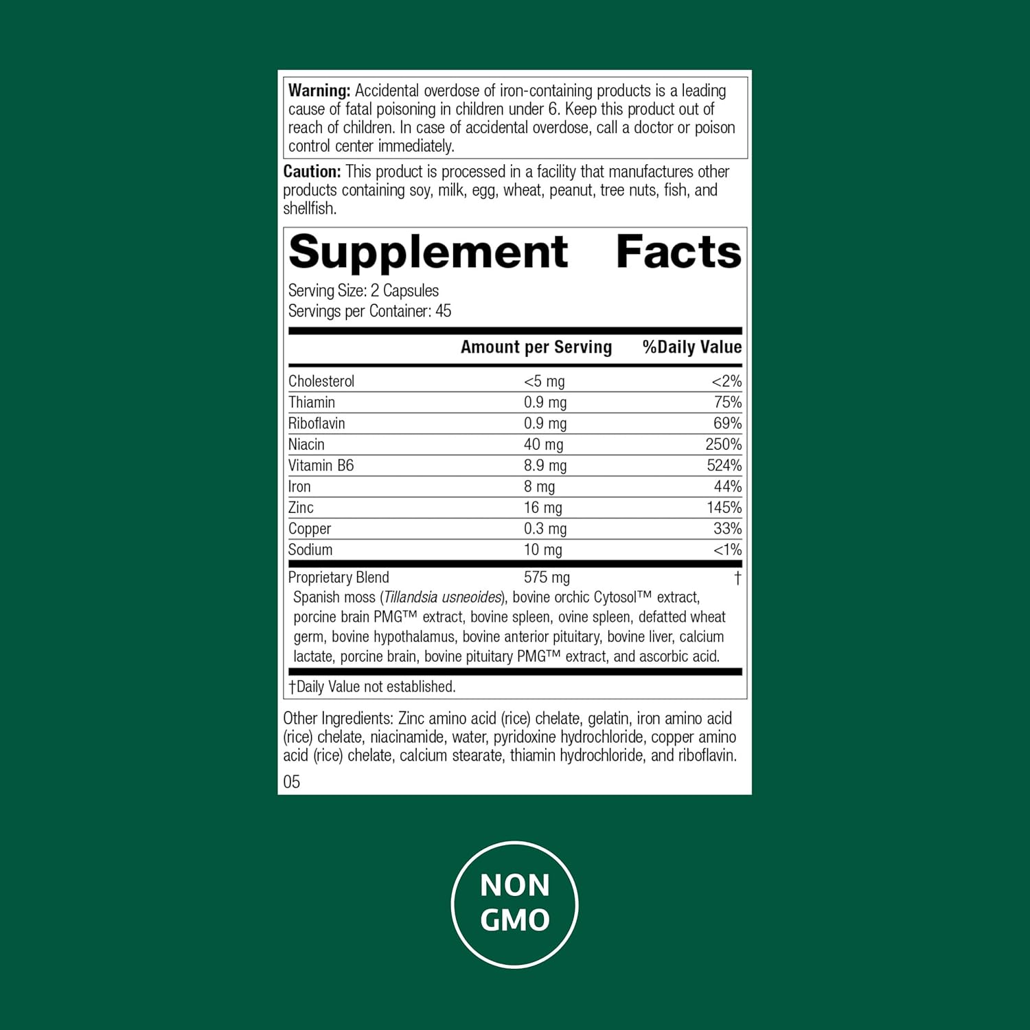 • Brain Supplement with Vitamins & Minerals: Contains vitamins and minerals that support endocrine function and includes complementary tissues*; excellent source of thiamin, riboflavin, niacin, vitamin B6, iron, zinc, and copper