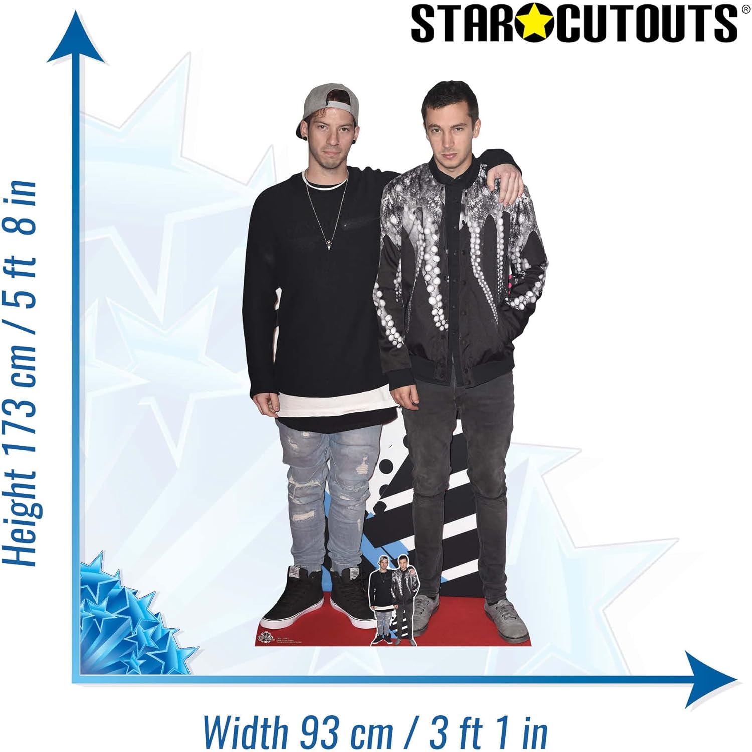 21 Pilots Lifesize Cardboard Cutout has fold out strut to the rear which means its entirely self supporting. This high quality cutout arrives in our own specially designed rigid packaging. Material: Cardboard cutout. Height : 173cm. Width: 93cm. Easy to assemble. Please order 3-5 Working Days In Advance