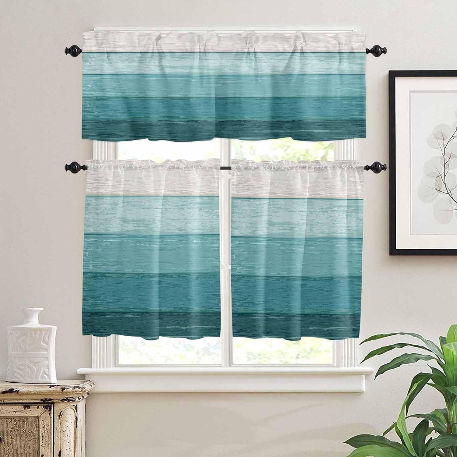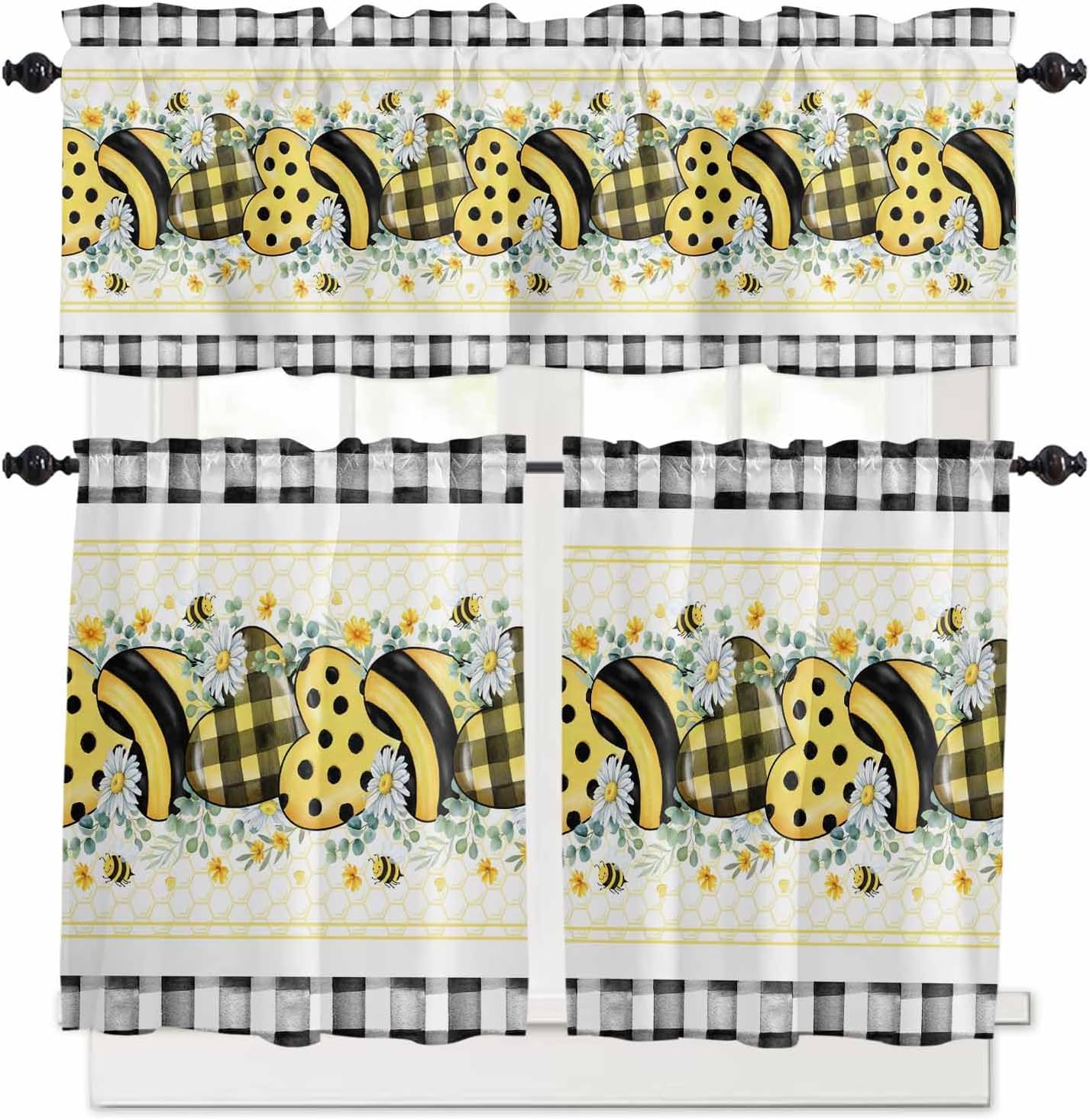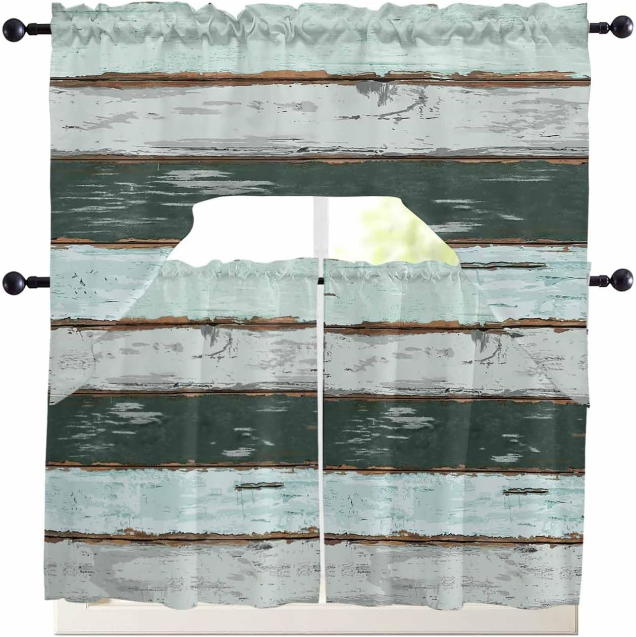 Quality Material: Our valance tier and short curtain set made with selected polyester blend material for excellent light filtering and privacy protection,which stand out in a variety of materials and are long lasting. Rod Pocket Design: Our light filtering window curtain set adopt 3 inches rod pocket top and can be easily installed on most standard curtain rods.Besides,our half window curtains and kitchen valance curtains feature a 1 inch head on top for elegance and harmony decoration. Great Addition: It is a good idea to choose this valance curtain and tier set to your house,it is suitable for kitchen,bathroom,bedroom,living room,laundry,studio ect.And it does not completely block the beautiful scenery,so you can still know the external dynamics,and appreciate the beauty of changes of the four seasons. Choice for Holiday Gift: Perfect for Birthday,Spring Party,Housewarming,Wedding,Mother's Day,Father's Day,Easter,St.Patrick's Day,Thanksgiving,Christmas decorations and gifts.Choose our window tier and valance sets to brighten your room. Package: Our valance curtain set includes 1 valance curtain and 2 short tier curtains.Make it easy to install and hang. Washing Tips: Machine wash or hand wash,tumble dry low,iron if needed.Do Not Blech. Size Dimension: 54x18in(about 137x45cm) + 27.5""x24""x2(about 70x61cmx2) 54x18in(about 137x45cm) + 27.5""x36""x2(about 70x91cmx2) NOTE:Please allow some deviation due to manumal measurement.