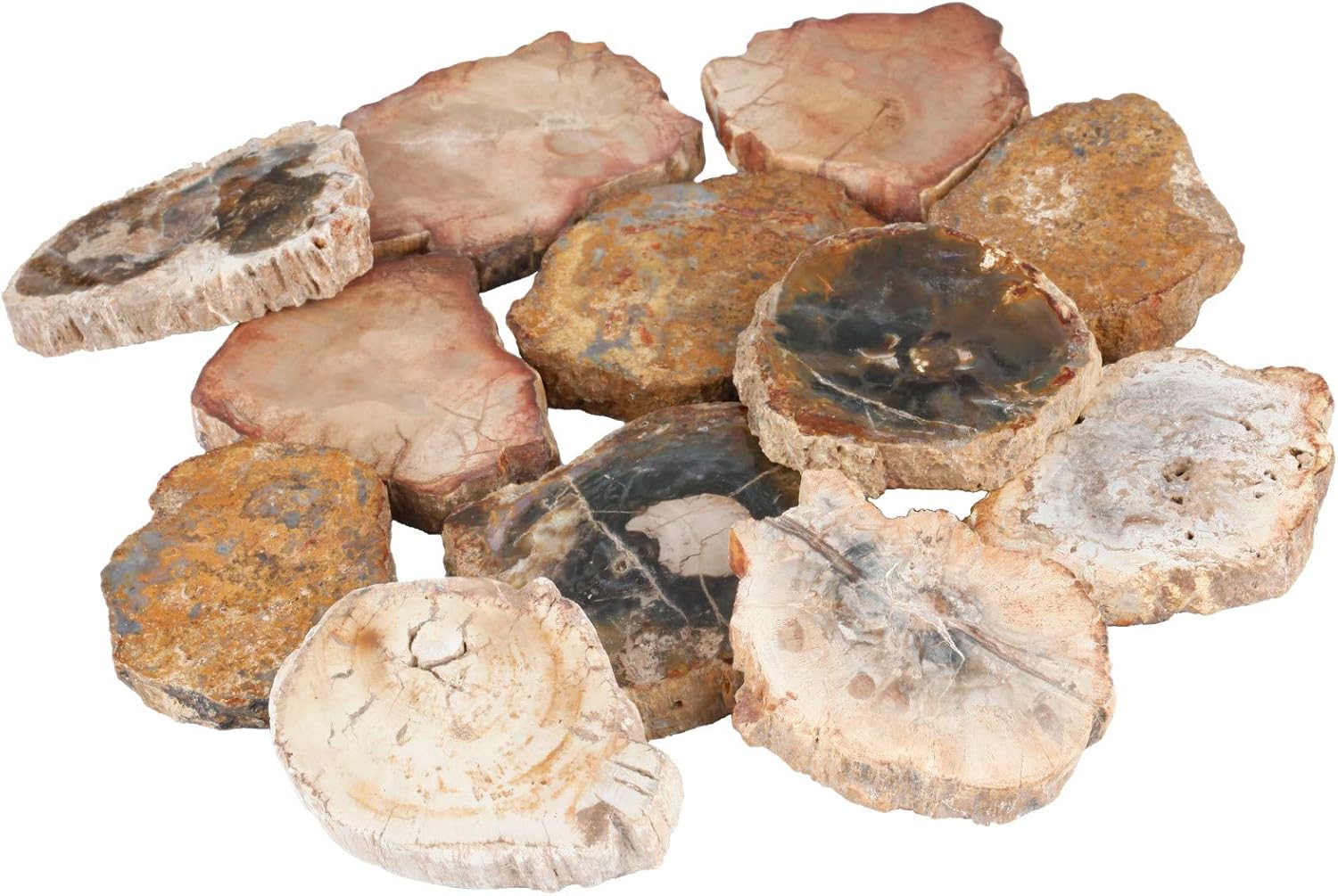 Bundle Item 4 pcs 1.5"-3" Natural Petrified Wood Slab Slice Stone 1 pcs 3"-5" Irregular Petrified Wood Slab Slice Stone 2 pcs gift bags Genuinely petrified wood slab tumbled stones, colors may be mixed of beige, black, grey, tan, and brown, and grains may different from each other.
