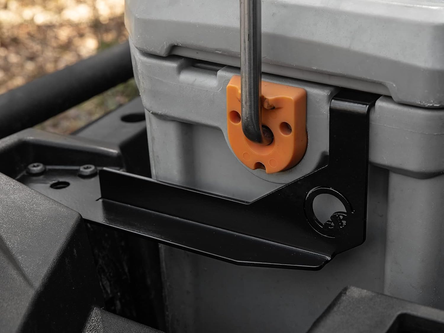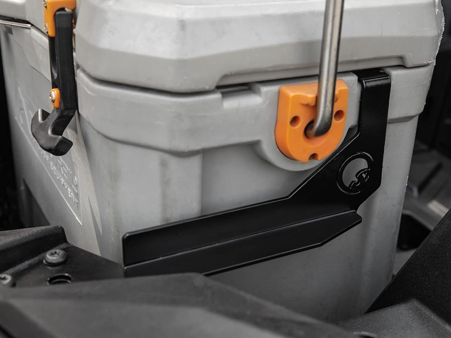 Ditch the Bungee CordsLeave the ratchet straps and bungee cords behind with this Cooler Mounting Bracket from SuperATV. Our heavy-duty steel brackets keep your Ozark Trail High Performance Thermocooler firmly in place while you ride. They’re weatherproof, easy to install, and give you the confidence to take sharp turns as fast as you want without losing your lunch.Grab and GoThe best thing about this cooler mount is that it doesn’t permanently attach the Thermocooler to your RZR’s bed. The bracket lip hooks over the top of your cooler, making it easy to grab it and go when you stop for a break. It also makes filling, draining, and cleaning the cooler a breeze.Installation Is a CinchYou won’t find an installation process easier than this one. These heavy-duty brackets attach to your bed using stock hardware—no drilling required! Just secure the bed mount to your machine’s existing mounting points and you’re ready to ride.FeaturesDesigned for the Ozark Trail High Performance Thermocooler (26 Quart)Made of 3 mm carbon steelUV-resistant powder coating prevents corrosionInstalls in minutes—no drilling requiredFitmentPolaris RZR XP 1000 : 2014-2023Polaris RZR XP 4 1000 : 2014-2023