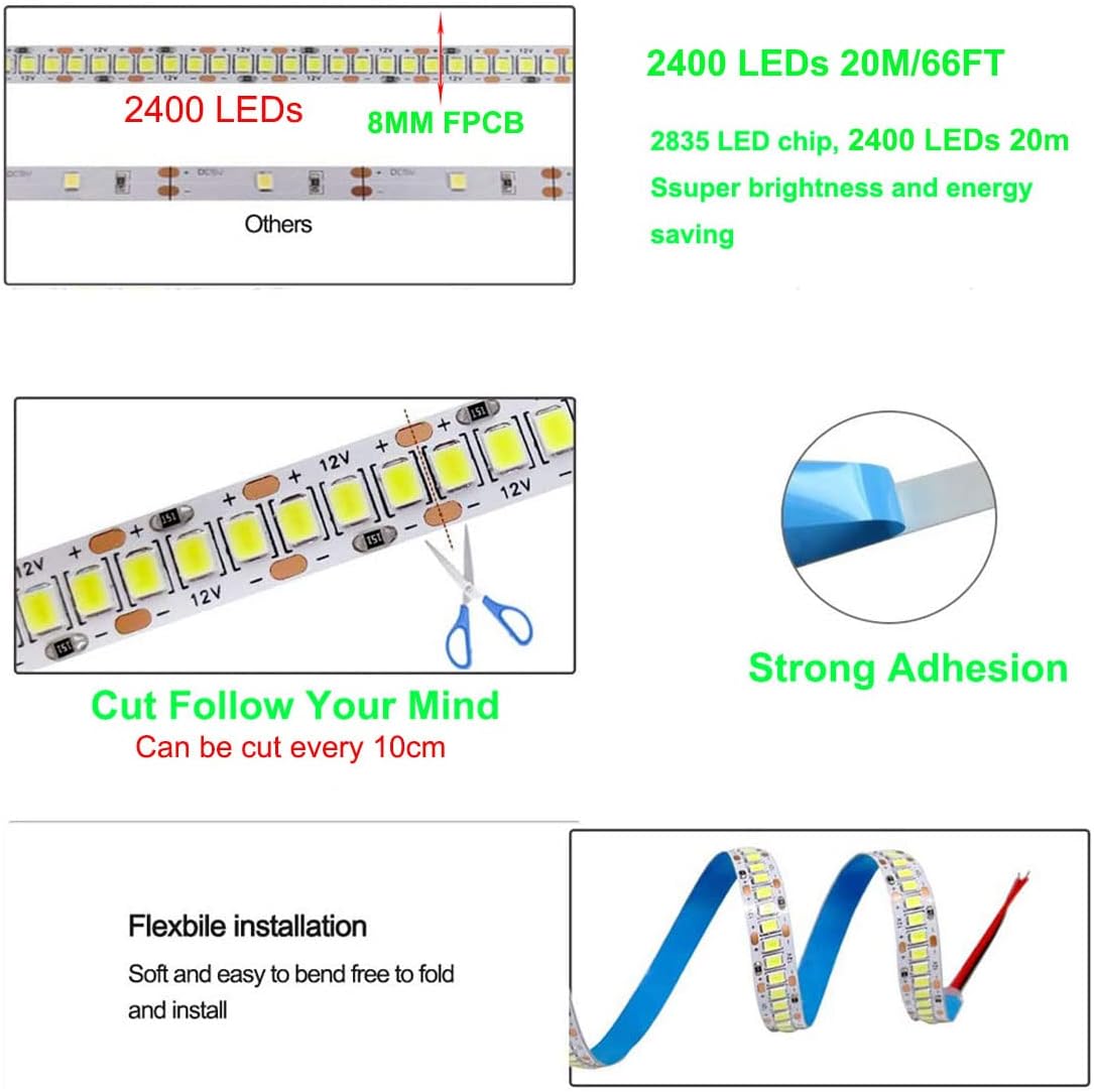 | Included Components | 1 * 66ft 2835 LED Strip Lights (Do not need any power adapter) |