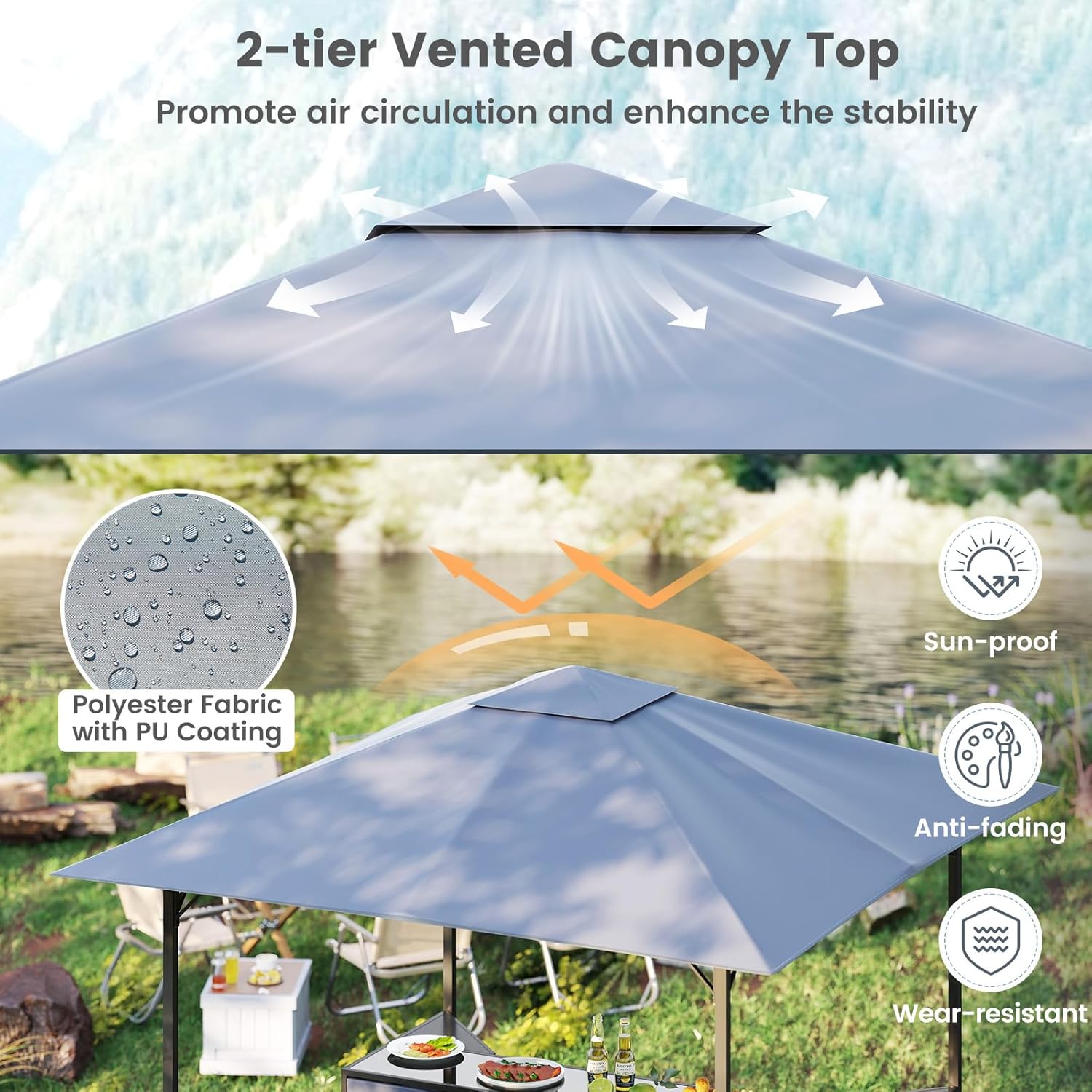 | Included Components | 1 x Grill Gazebo, 2 x Bar Stools, 4 x Ground Stakes, 8 x Expansion Screws, 1 x User's Manual |