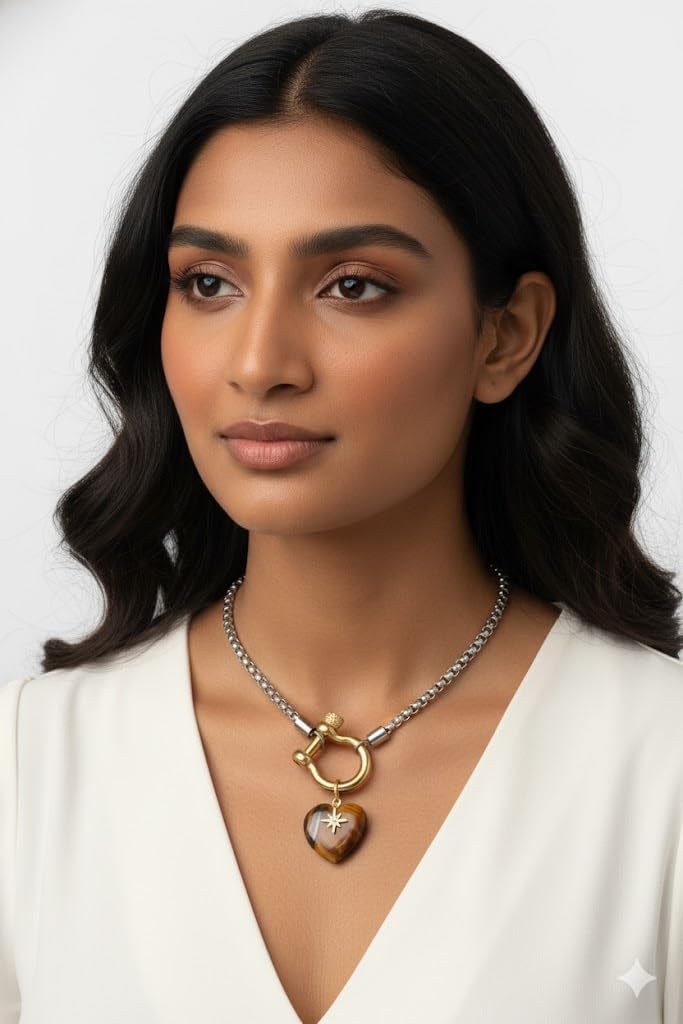 Step into your power with the HeartsLinked Tiger’s Eye Natural Crystal Heart Pendant, a handcrafted necklace designed for confidence, courage and protection. Tiger’s Eye is known as the stone of leadership, helping you stay focused, decisive and grounded when pursuing your goals. Each piece features a polished natural Tiger’s Eye heart combined with a symbolic horse-shoe clasp, believed to draw success, clarity and good luck. Whether you’re stepping into a new role, starting a creative project, launching a business or navigating big life decisions, this necklace supports strength and emotional stability every day. Crafted with hypoallergenic stainless steel, the necklace is waterproof, sweat-proof and non-tarnish, making it perfect for daily wear. Perfect gift idea: For birthdays, career milestones, or spiritual seekers, this necklace is a meaningful gift for anyone who wants to manifest courage, clarity, and success in life. Perfect for: Confidence boosting Leadership energy Protection & grounding Creativity & motivation Gift for men or women
