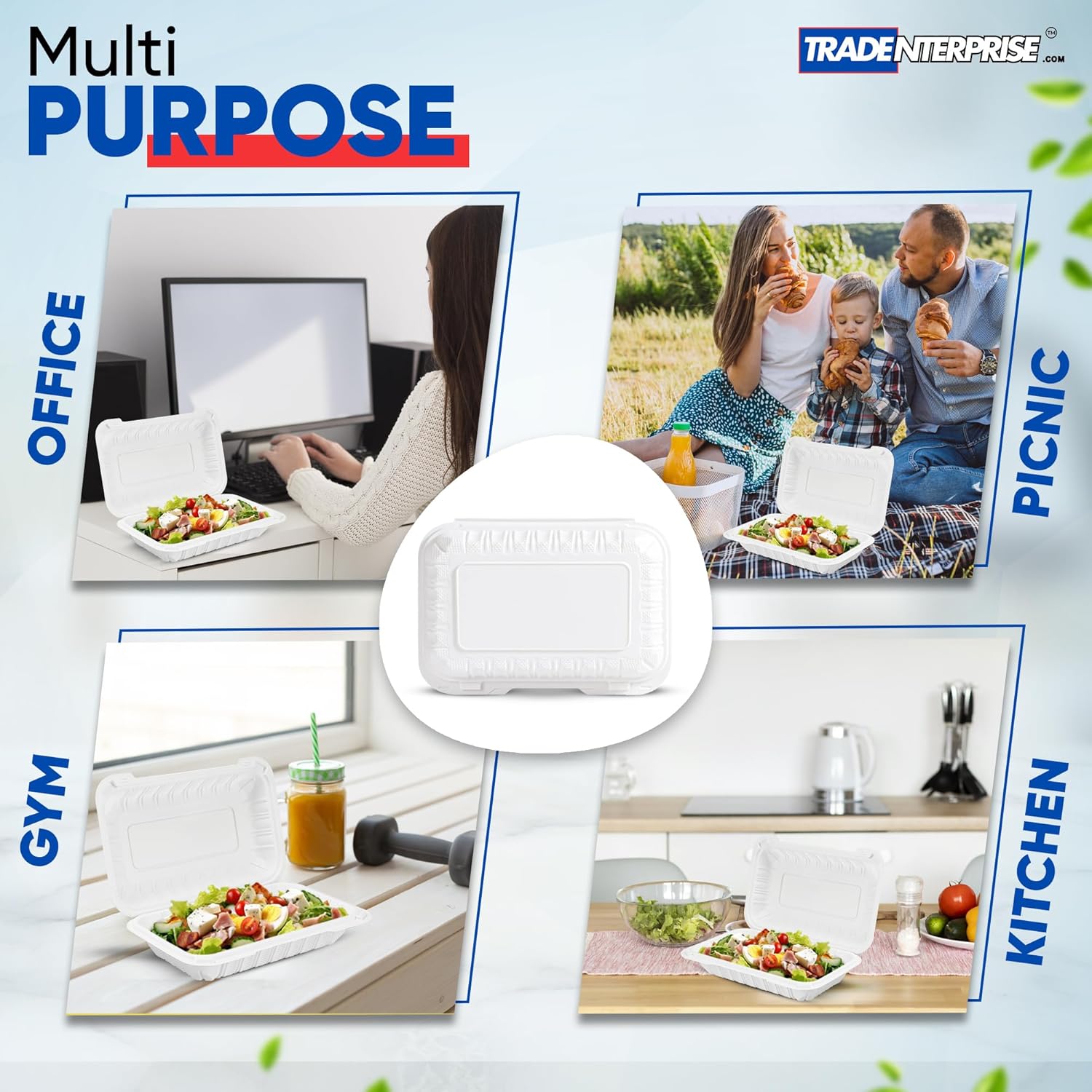 Hot or Cold Use: These to-go clamshell containers can be used for both hot and cold food items. They offer reliable strength and don’t contain wax lining. These containers are microwaveable and freezer-safe. They’re also oil-resistant and cut-resistant. Perfect for any occasion: Premium, environmentally friendly products and classic design, offers peace of mind for providing tableware for your family and friends. Perfect for camping, picnics, lunches, catering, barbecues, events, parties, weddings, and restaurants. 9x6 inch Clamshell Container: serve full meals in a convenient style. They are perfect for serving main dishes with sides. The to-go containers make a great choice for daily meals, restaurants, food trucks, to-go orders, special events, and other food service environments.