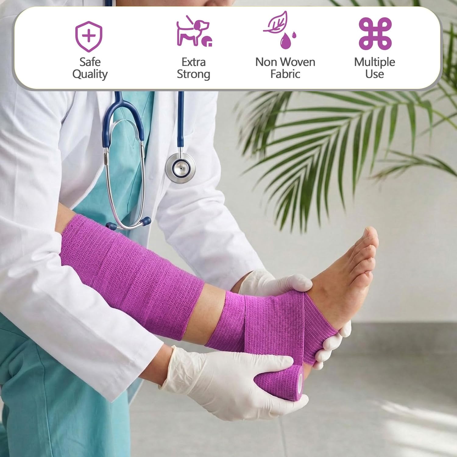 Features: Note: Athletic tape can be wrapped directly on the skin but not directly on the wound. There may be some smell, this is normal, ventilation before use for a while, the smell can be dissipated. These self adhesive bandages have dark and light colors, ideal for children, women and men, individually packaged, better flexibility, applicable to multiple parts, while not needing scissors to cut, and can be directly torn, practical and very convenient, is the family, school, hospital or event place necessary good things. Safe and comfortable: Ankle tapes provide good support to reduce sprains and swelling of fingers, wrists, elbows, feet, ankles, knees, etc., without tearing your hair out or scraping your skin. Specifications: Quantity: 96 pcs Material: non woven porous fabric Size: approx. 2 inches x 5 yards/ 5 cm x 4.5 meters Package includes: 96 x Self adhesive bandage Warm notice: Manual measurement, there may be slight differences in size. Due to the screen display, the color of the item may differ slightly from the picture. The risk of entanglement exists, please keep it away from children