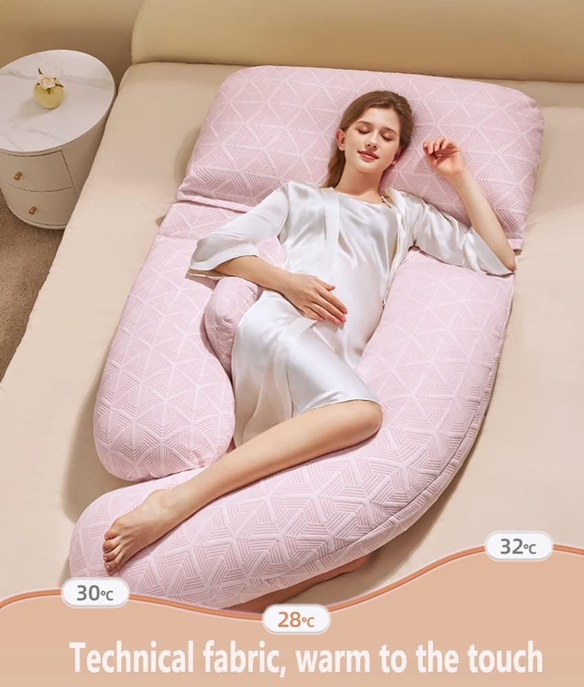 Our maternity pillow is specifically designed to accommodate the contours of the pregnant body. This pillow provides support for every part of your body makes you feel comfortable when you sleep. ? Super soft cotton material: Comes with a removable soft cotton cover which is soft, breathable. It is easy cleaning and machine washable. ? High-elastic hollow cotton: High-elastic hollow cotton which is soft and breathable with good resilience to keep fluffiness for longer use. Double invisible zipper for easy removal and washability. It is easily add or remove the filling to adjust the pillow height. ? Features detachable design, this full-body pillow can well support your head, neck, waist, and belly, effectively relieve neck pain, lumbago, and Leg edema. ? The maternity pillows are great for mothers-to-be or those who suffer from upper body pain, joint pain, leg swelling, and back pain when sleeping. ? U-shaped pregnancy pillow designed to replace the need for multiple bed pillows and cradle your body and help you enjoy a restful night's sleep. ? Effectively offers improved blood circulation all night long and releases your body pressure. Use tip: Since the pillow is packaged vacuum for convenient transport, please allow 48 hrs for it to fluff up!