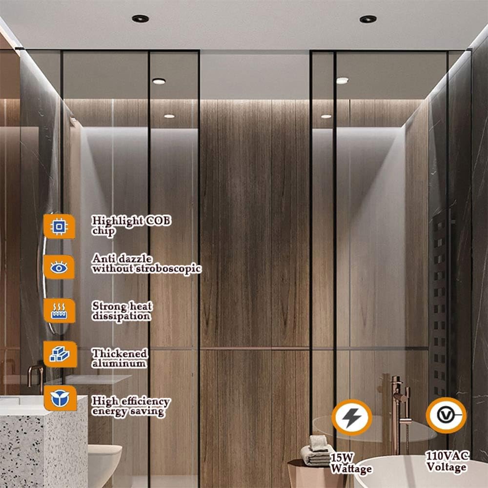 Product Description1. Healthy, no flicker, eye protection, quick to activate.2. Built-in high-power LED driver, imported COB chip, good heat dissipation and small light attenuation.Product Type: Concert/Spotlight Ceiling/Recessed Ceiling Spotlight/Recessed TiltFixed color: blackMaterial: aluminumSize information: (refer to size chart)Power: 7W, 10W, 12W, 15W, 18W, 24W7W, surface diameter: 80mm, height: 70mm, opening size: 75mm10W, face diameter: 80mm, height: 70mm, opening size: 75mm12W, surface diameter: 110mm, height: 78mm, opening size: 95mm15W, surface diameter: 110mm, height: 78mm, opening size: 95mm18W, surface diameter: 135mm, height: 91mm, opening size: 125mm24W, surface diameter: 135mm, height: 91mm, opening size: 125mmColor temperature: 3000K, 4000K, 6000K optionalColor rendering index: Ra≥90Bulb type: LEDNumber of light sources: 1Voltage: 110V-240VIrradiation area: 10㎡15㎡Specific uses: Suitable for study rooms, corridors, restaurants, storage rooms, bedrooms, living rooms, corridors, exhibition halls, balconies, and hotel rooms.Package includes:Downlight*1Mounting Accessoriesnotes:1. Please make sure the power is turned off before installation.2. Please confirm the size before purchasing.