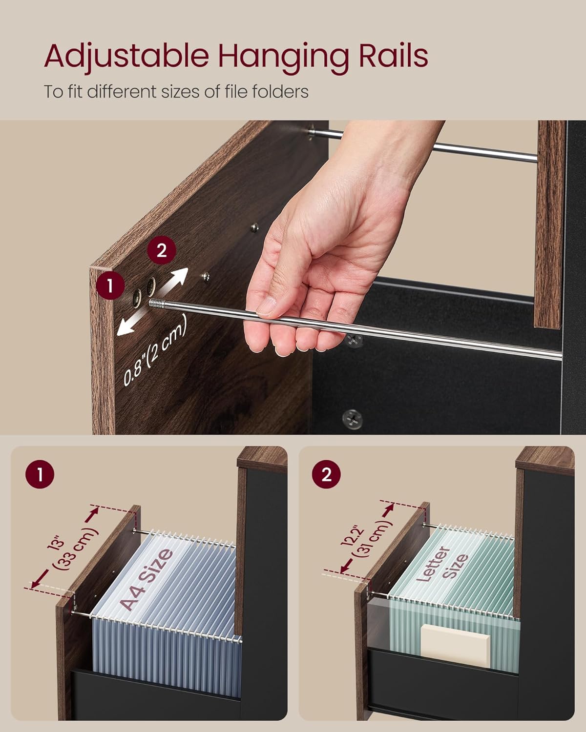 | Item Type Name | Small Rolling Filing Cabinet for Home Office, Printer Stand, for A4, Letter-Size Documents, 15.7 x 16.5 x 27.6 Inches, Natural Walnut and Ink Black UOFC040K01 |