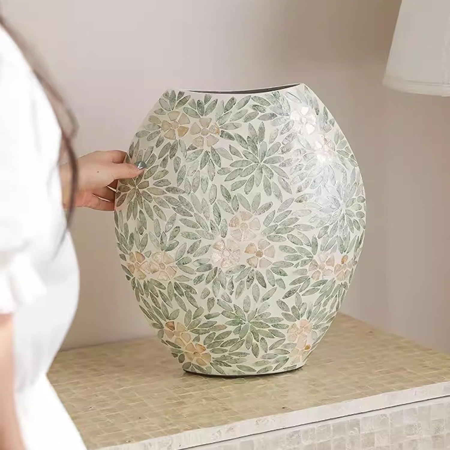 A modern vase would be an exquisite gift. You can keep it for yourself, or give it as a gift for Mother's Day, Thanksgiving, anniversaries, weddings, and housewives to others.Light Luxury Style Handmade Seashell Decorative Vase Creative Tabletop Flower Arrangement Household Entrance Living Room Tabletop DecorationProduct Name: VaseMaterial: Natural seashells+woodStyle: MinimalistFlower type: countertop vaseCraftsmanship: Manual cutting and splicingWeight: 820g, 1330gApplicable scenarios: living room, bedroom, tabletop, bedside