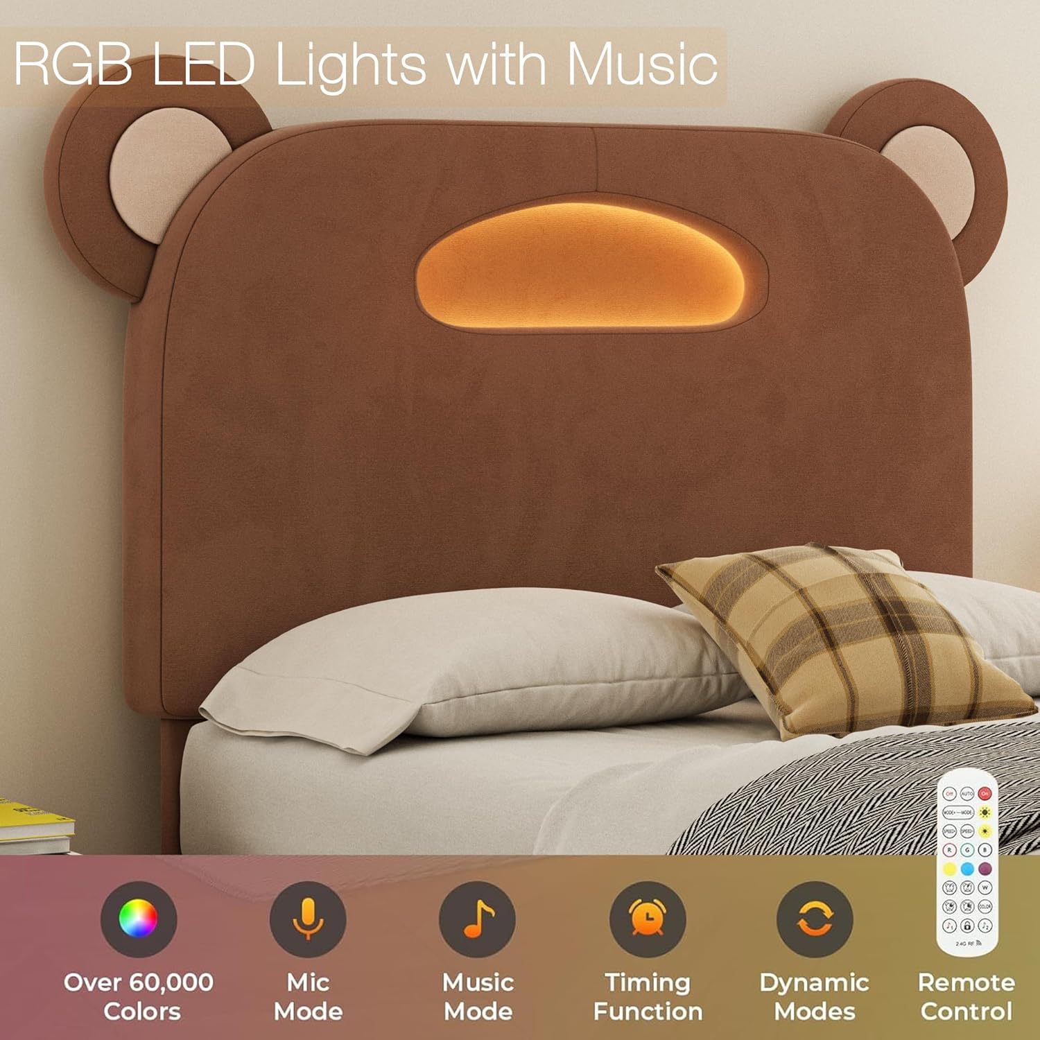 | Item Type Name | with LED Light, Upholstered with Tall Bear Headboard, Strong Platform for Kids Girls, Wooden Slats Support, No Box Spring Needed, Brown |