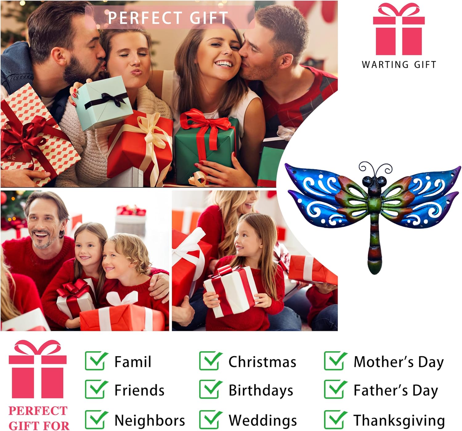 WAIU Solar Dragonfly Garden Lights - 20-Inch Metal Wall Decor with 20 Multi-Color LEDs, Waterproof Hanging Outdoor Lights for Patio, Fence, Balcony & Walkway Material: Metal Color: Dragonfly Size:20.47"W*1.2"D*12.4"H Weight:1.03LBS