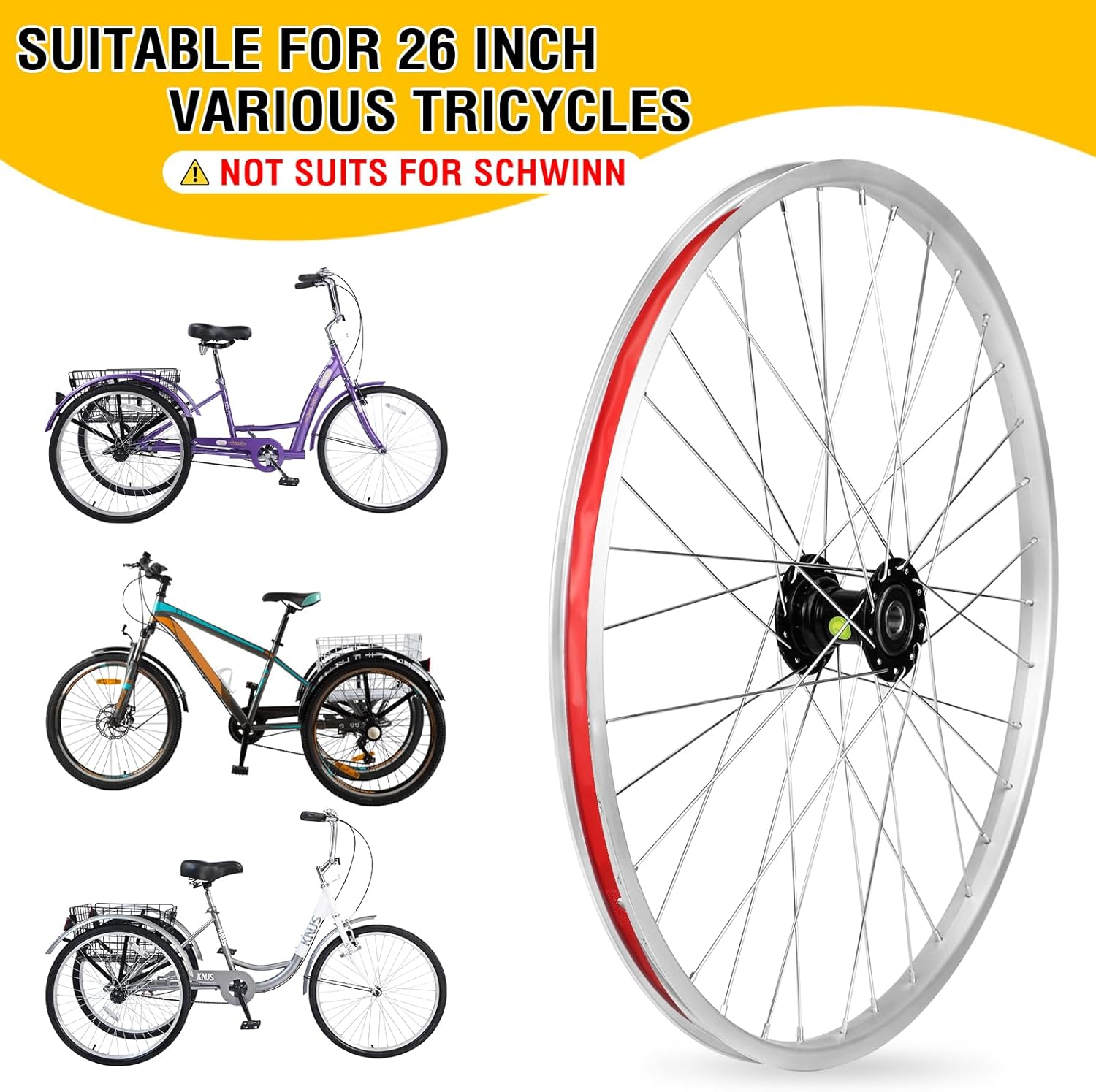 WEEROCK 24/26 Inch Adult Tricycle Wheelset, Aluminium Alloy Single 24"/26" Left Right Wheelset for 24/26 Inch 3 Wheel Bikes, Trikes