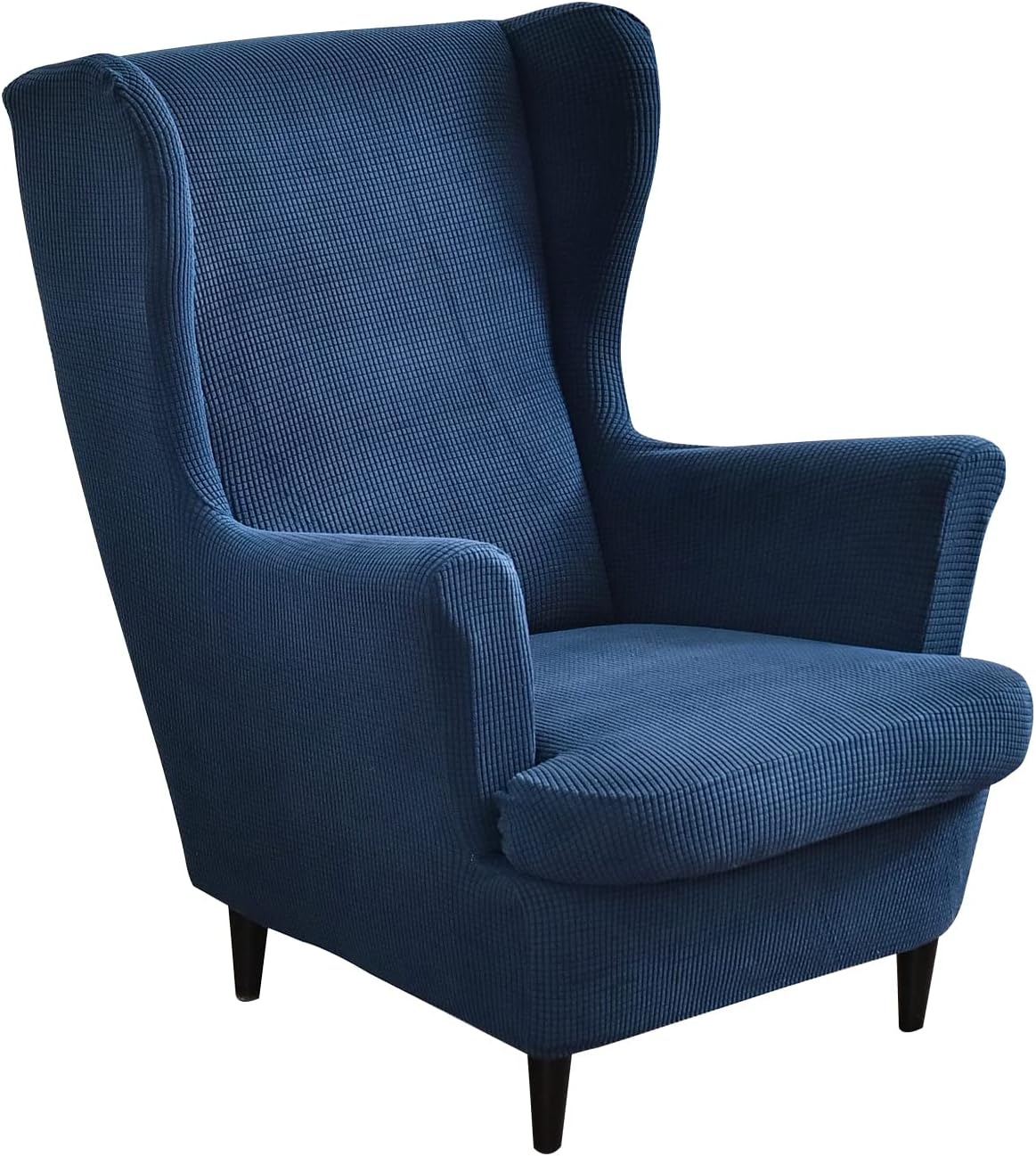 The wing chair cover is perfect for families with children and pets. You can choose the colour that suits the decor of your home. Features of the Wing Chair Cover:The wing chair cover consists of 2 parts, one is a chair slipcover and the other is a cushion slipcover. It can cover the wing chair perfectly.The wing chair cover has a separate cushion cover. Covering your cushion separately, it fits your wing chair better and does not slip off easily.The bottom of the cover and cushion cover has an elastic band sewn in to hold the hem of the cover better to the chair and can be better adapted to the size and shape of the sofa.The wing chair cover not only protects your chair from stains and wear and tear. It extends the life of your wing chair.Easy to put on and take off, simply place the excess fabric in the gap between the back and the seat for the perfect look.Protecting your armchair from food and drink spills, pet hair and mess, the cover is easily machine washable.Our stretchy wing chair covers make great birthday gift ideas for holiday or birthday gifts for mum, dad, friends. Suitable wing chair sizes:Wing chair length: 70-100cm (28-39in)Wing chair width: 70-85cm (28-33.5in)Wing chair height: 80-100cm (32-39in) Package includes:1x Wing Chair Cover1x Cushion cover Caution: The 2-piece set only includes the chair cover and cushion cover, the armchair and cushion are not included. If your wing chair does not have any seams to fill in the excess fabric, it may not be perfect. Sizes are measured by hand, please allow for slight deviations within 1-2cm. All images are taken in real life, but there may still be a slight colour variation due to the monitor or lighting.